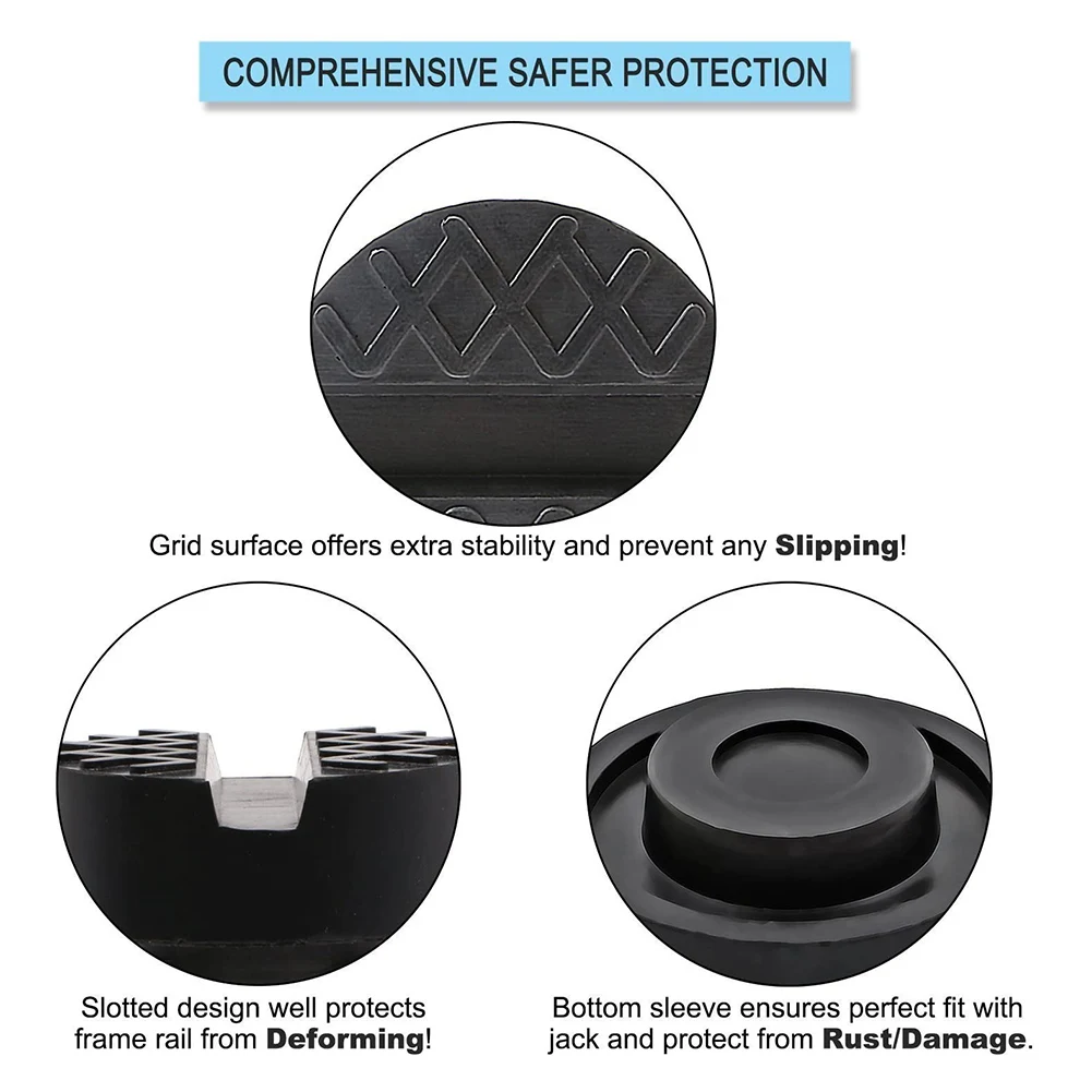 Enhanced Stability: Provides a secure grips on jacks points, reducing the possibility of slipping or frame damage.