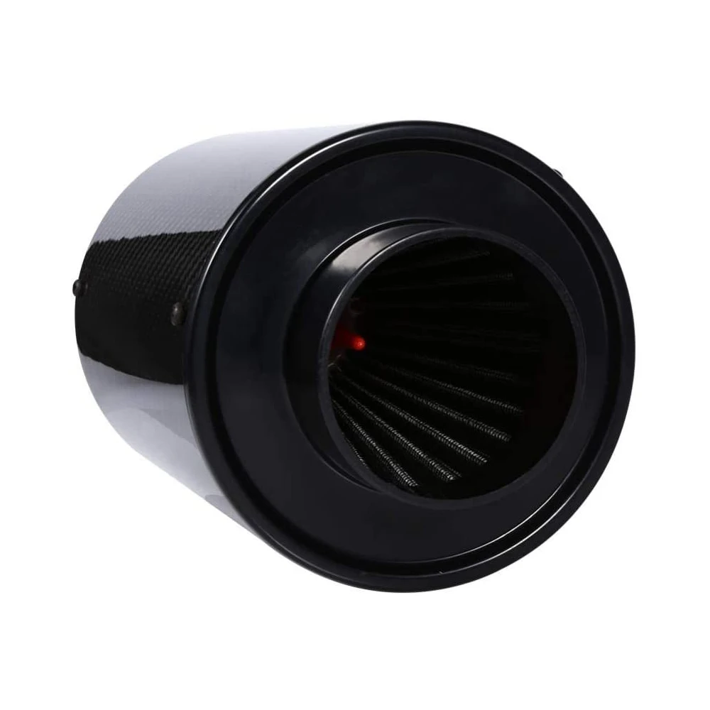 a.This carbon fibre air filter is s p e c i a l i z e d for naturally aspirated vehicles, can safely and effectively increase air input. It adopts selected raw material and seriously manufacture, high quality and lightweight, good noise reduction property and heat insulation. Moreover, with it dual intake high flow filter cartridge, can directly intake outer cold air and decrease inhaling resistant, effectively increase horsepower and torque, protect vehicle’s engine.