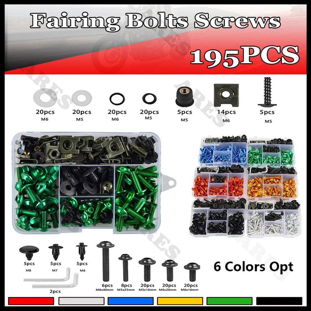 195pcs Motorcycle Body Fairing Bolt For Suzuki GSXR 600 1000 Bandit 1200 1250S V-Strom SV Hayabusa RG GS Katana 750 GSX TL 1000S