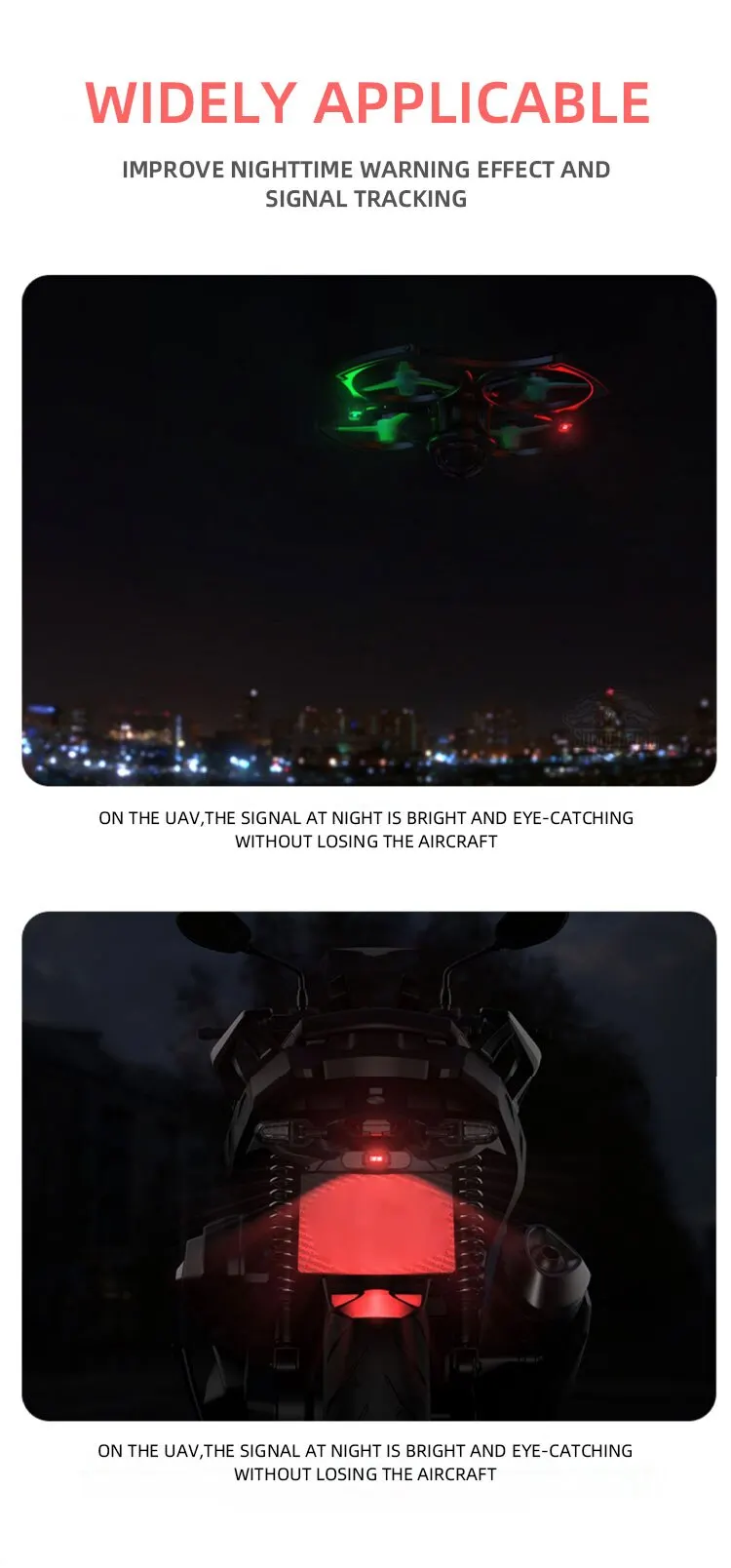 these are great lights to use on rc planes. they hardly weigh anything and fairly bright at a far distance.