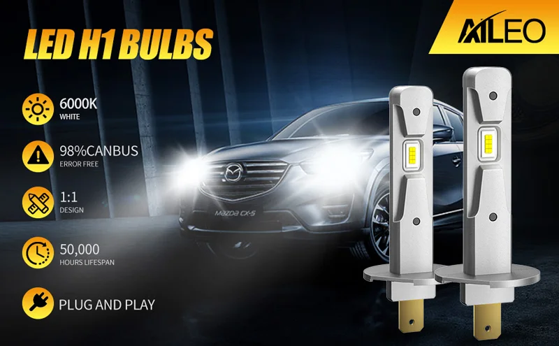 Lamps H1 Led size keep same light position as halogen bulb filament and ultra-thin only 1mm copper plate ensure perfect beam pattern. Wider and longer driver’s eye views, No dark spots, No glaring on coming vehicles and its drivers. Gaining safe and comfortable driving experience.