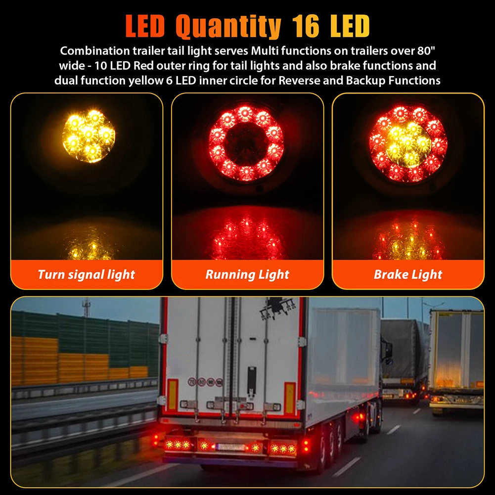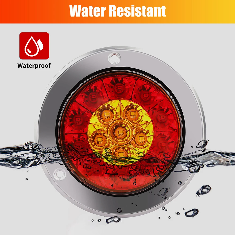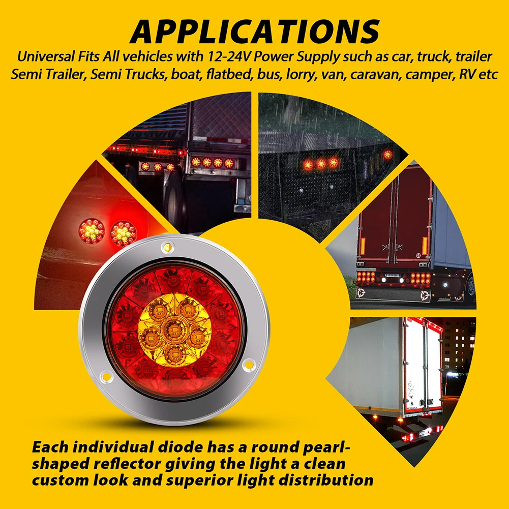 2pcs 12V 24V Round LED Red Yellow Tail Lamp Brake Rear Bumper Turn Signal Fog Running Light For Trailer Truck RV