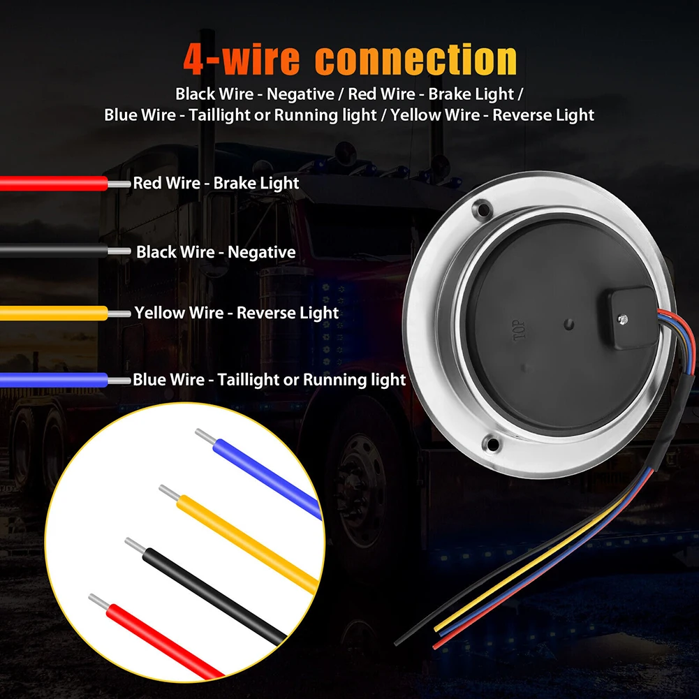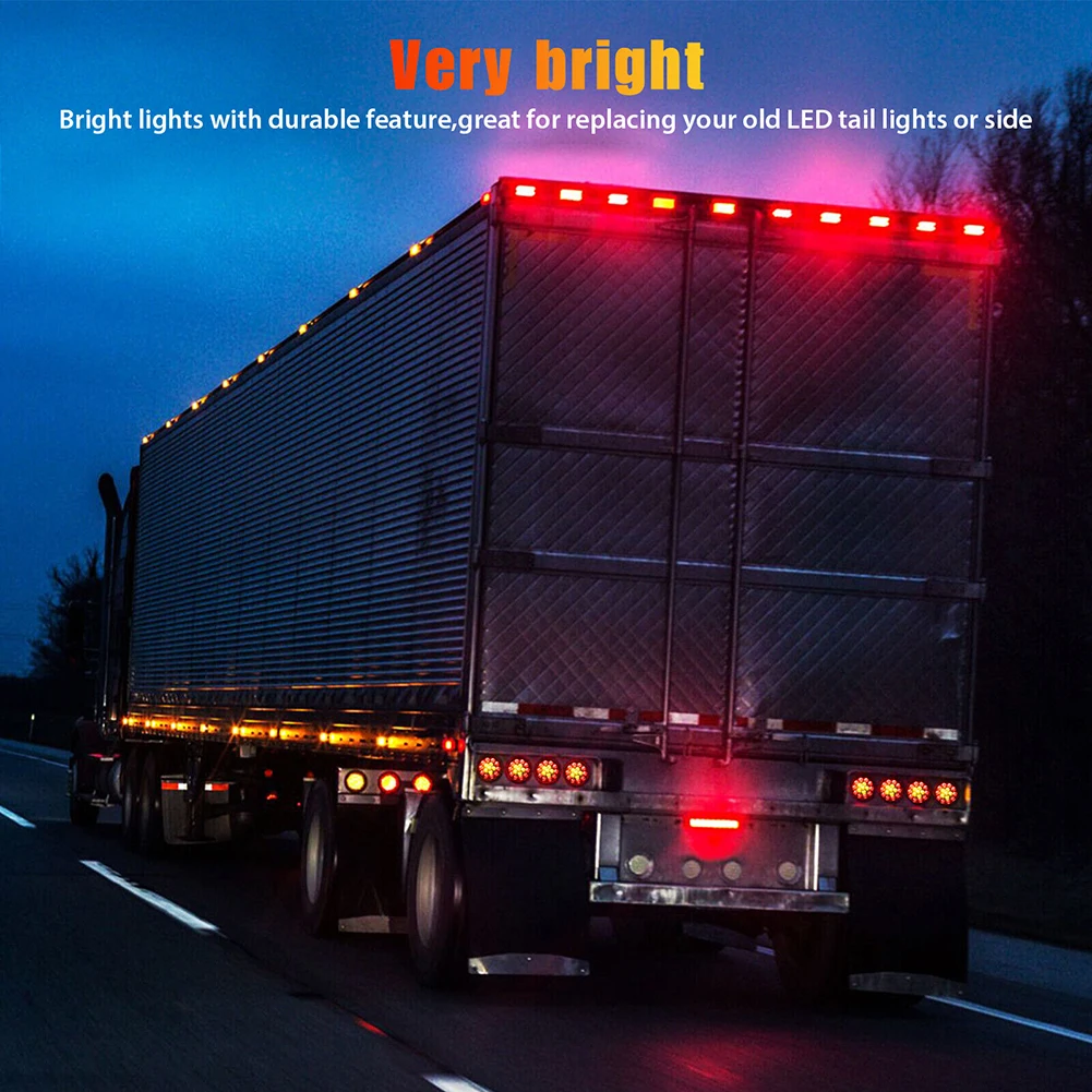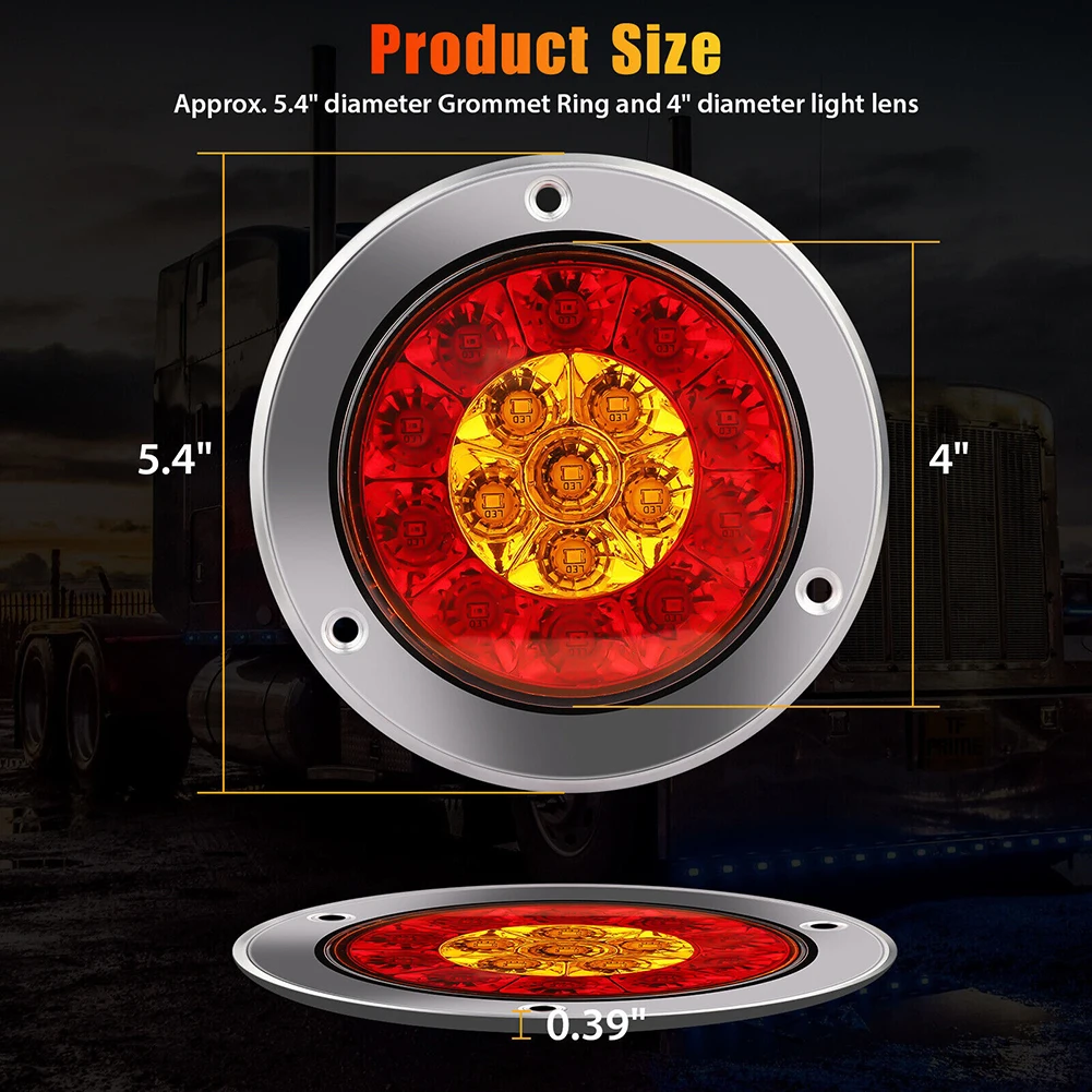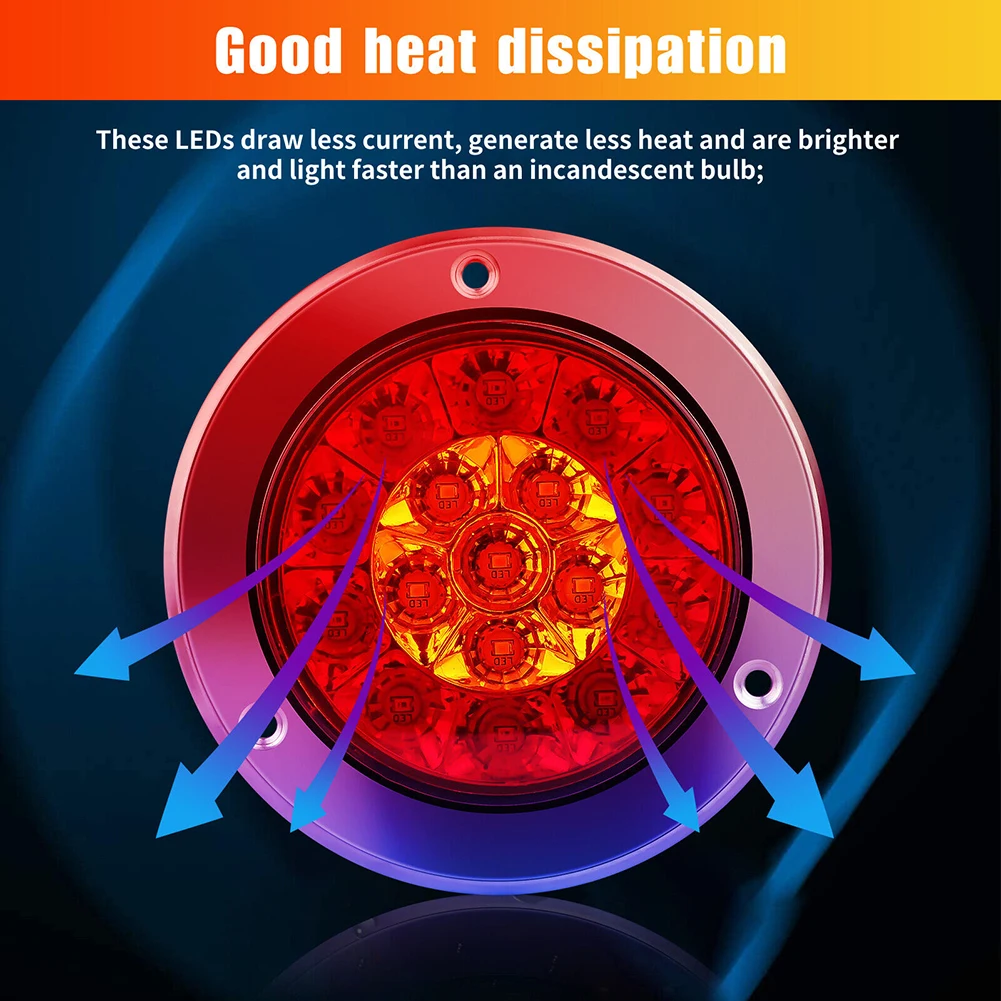 2pcs 12V 24V Round LED Red Yellow Tail Lamp Brake Rear Bumper Turn Signal Fog Running Light For Trailer Truck RV