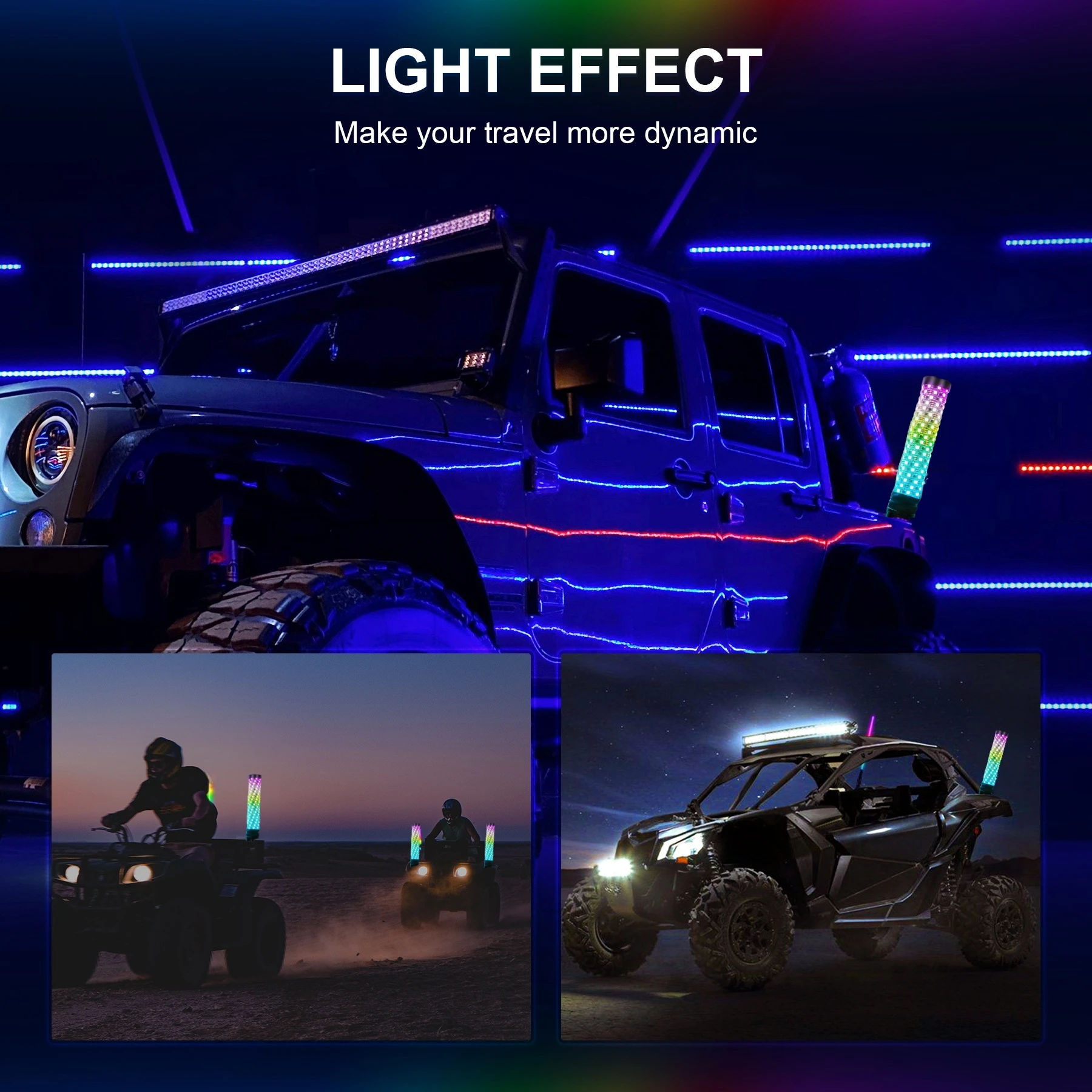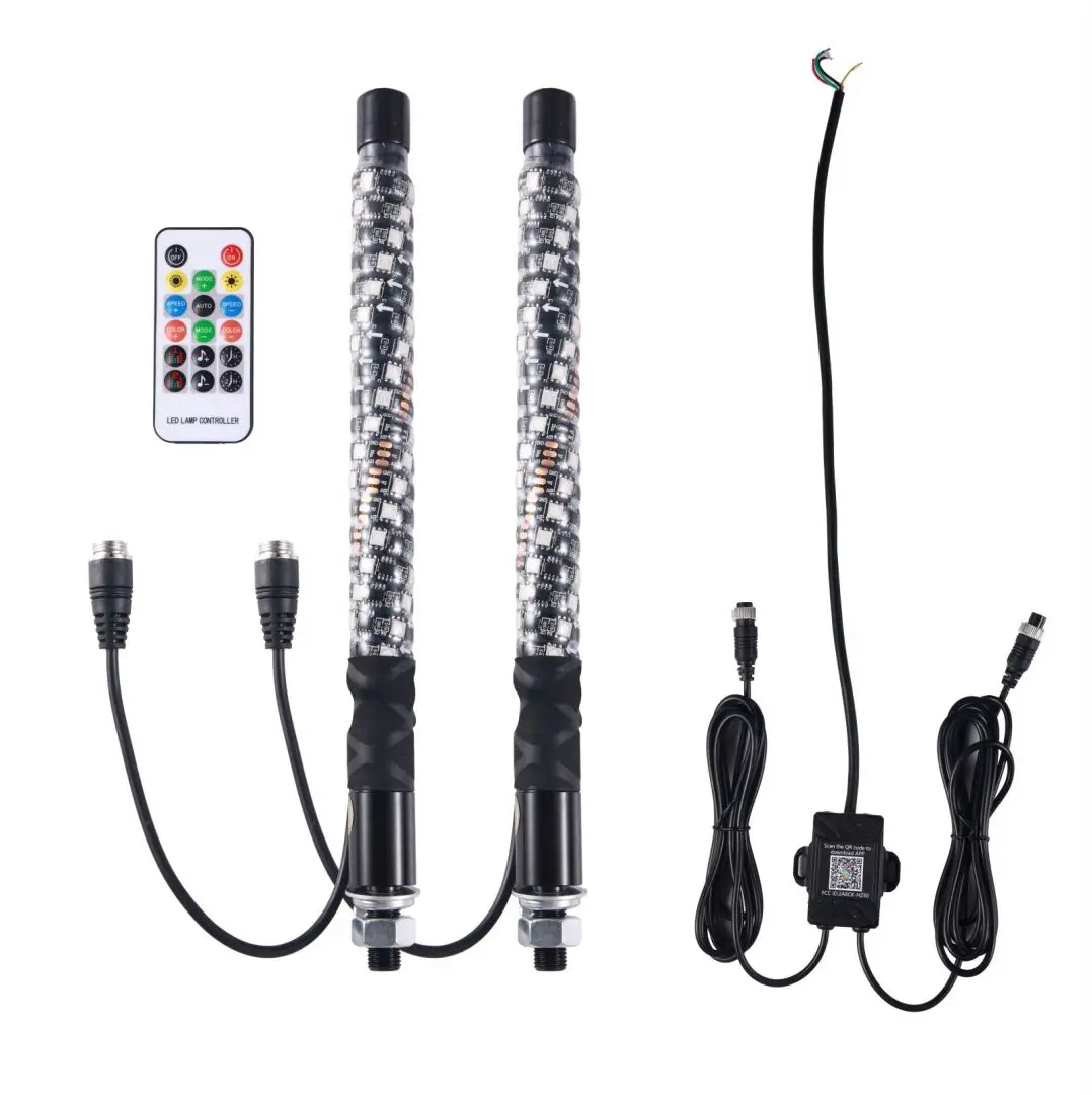 3. Remote Control: These whips can change colors and chase colors with the push of a button on the wireless remote controller, and the transmission distance is 10m.