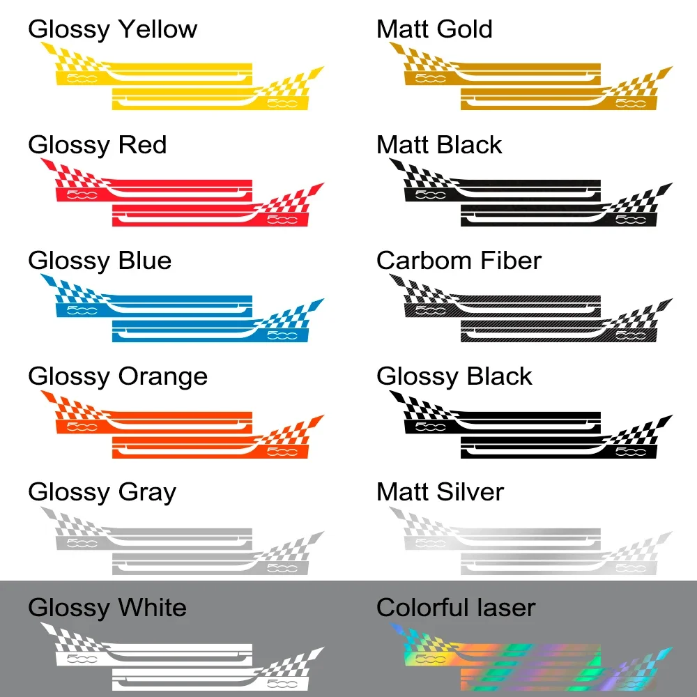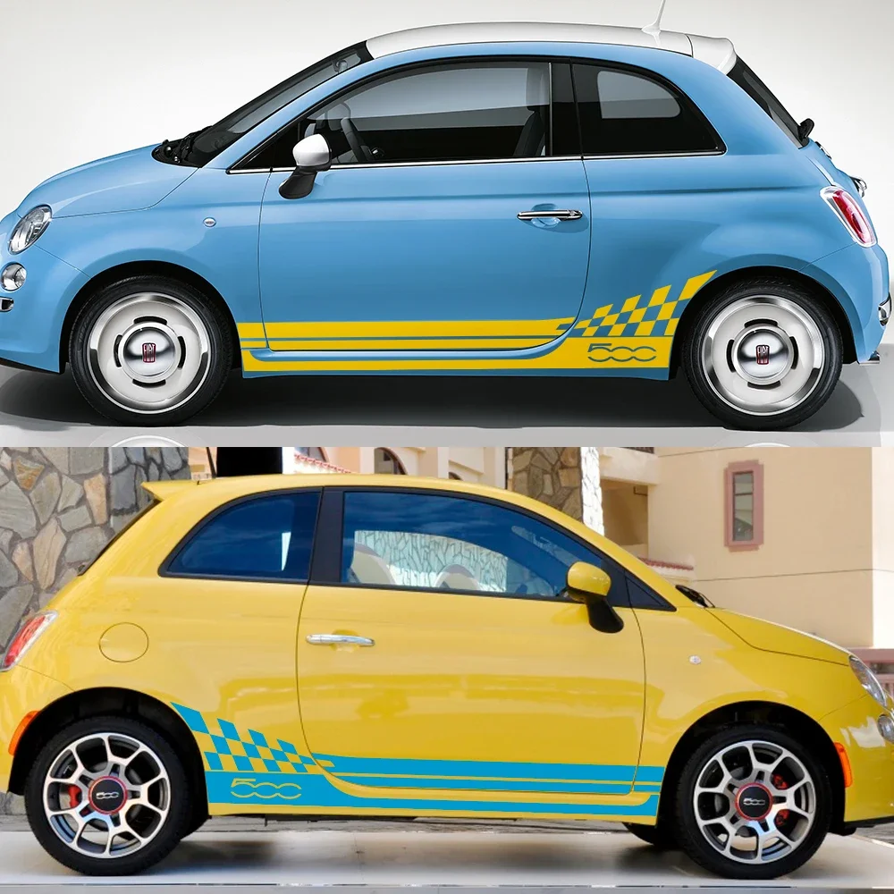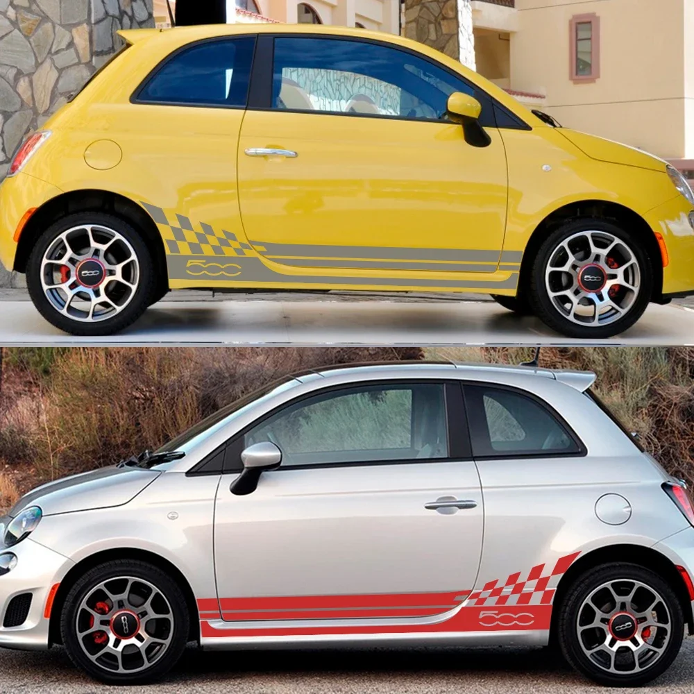 2PCS Car Door Side Skirt Stripes Stickers For Fiat 500 Body Decor Graphics Vinyl Film Decals Auto External Tuning Accessories