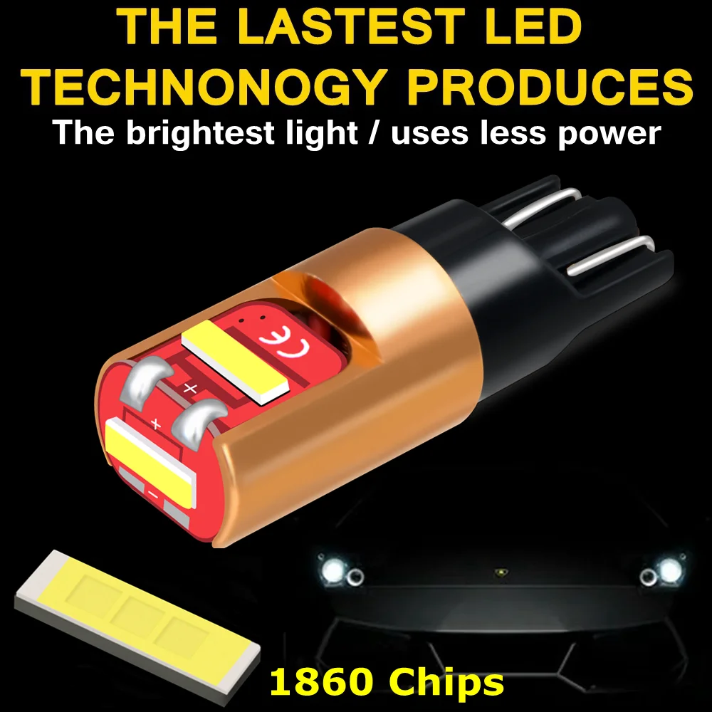 2pcs T10 LED Bulbs Super Bright W5W WY5W CSP Chips 1000Lm Canbus Car Parking Lights Auto Dome Lamp White Red Yellow Crystal Blue