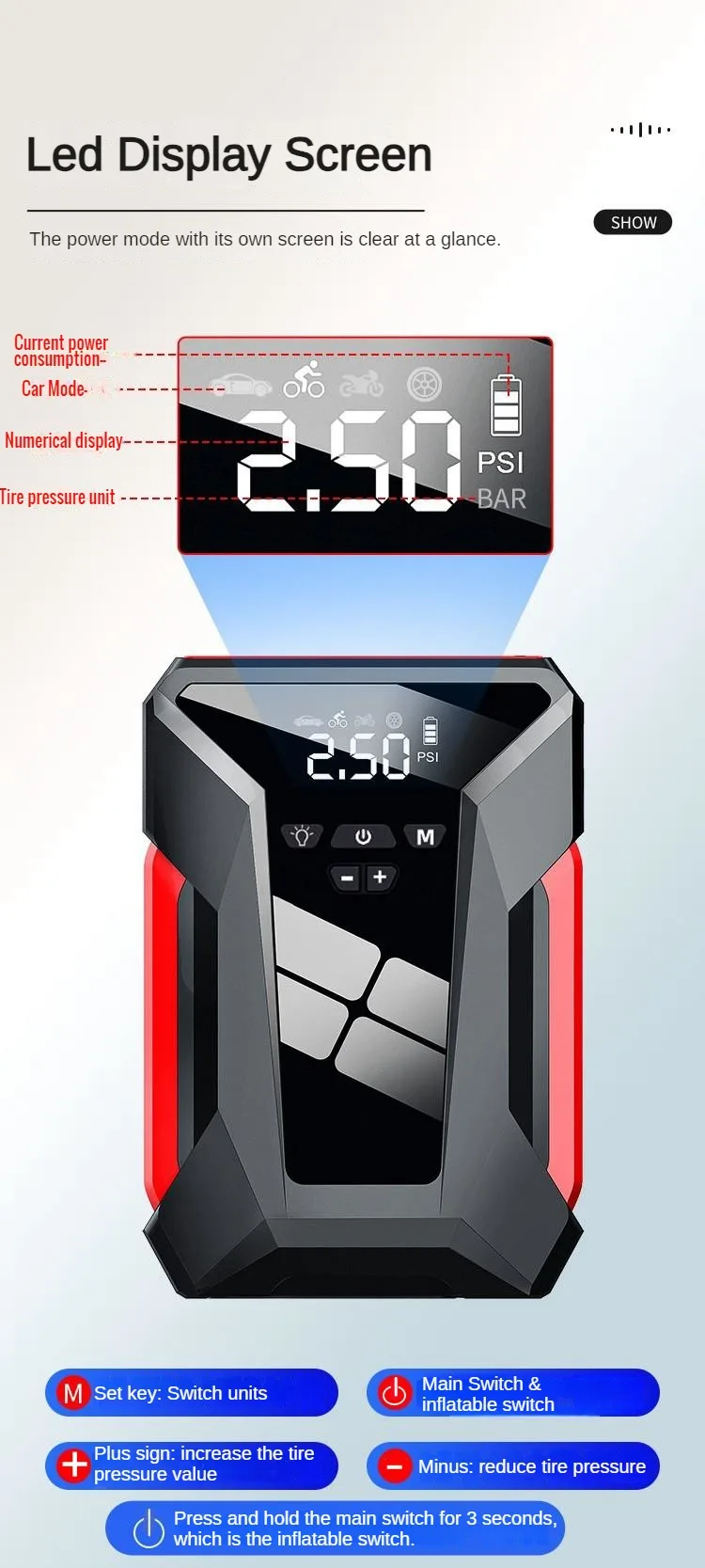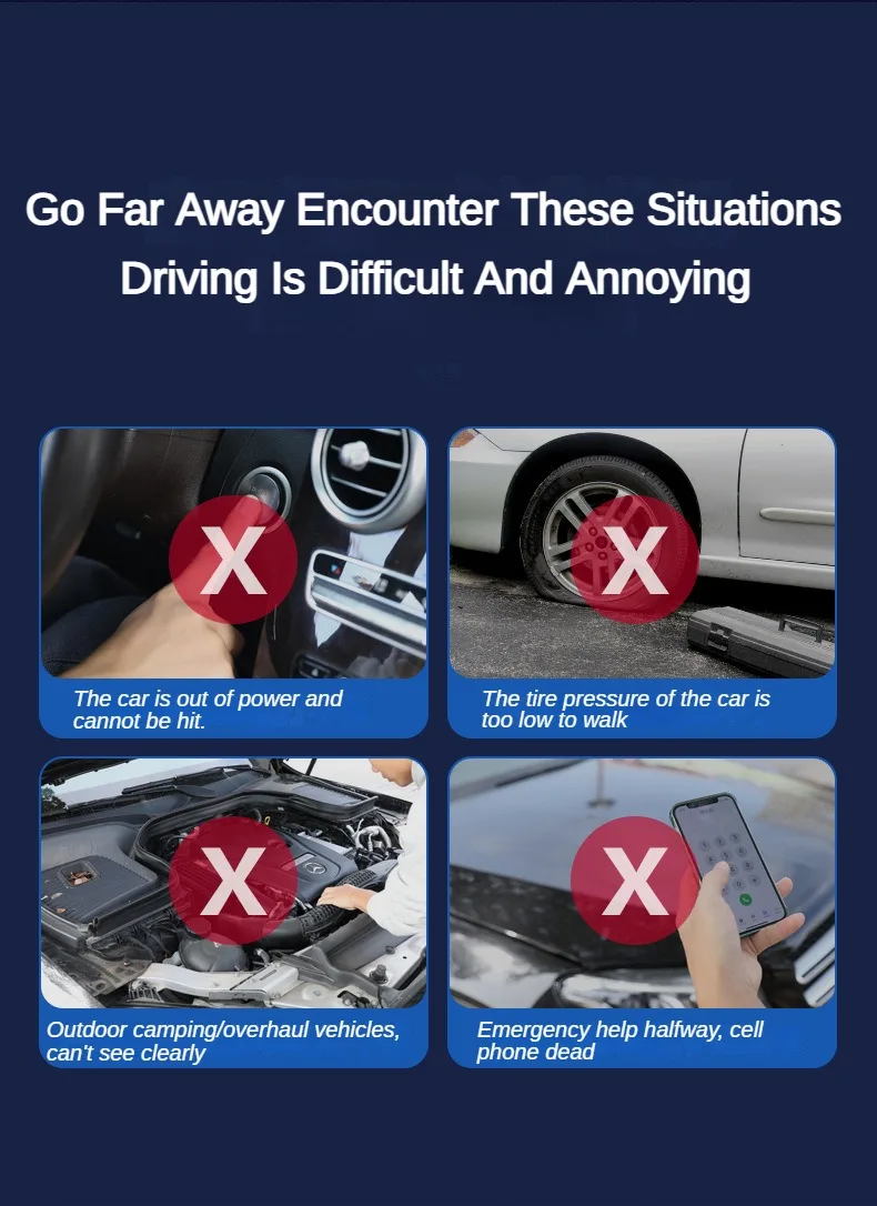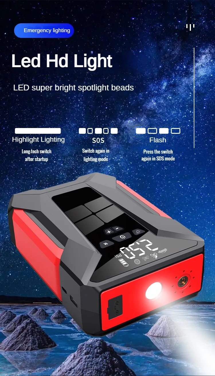 Features: Emergency power air pump, car starter, emergency power supply