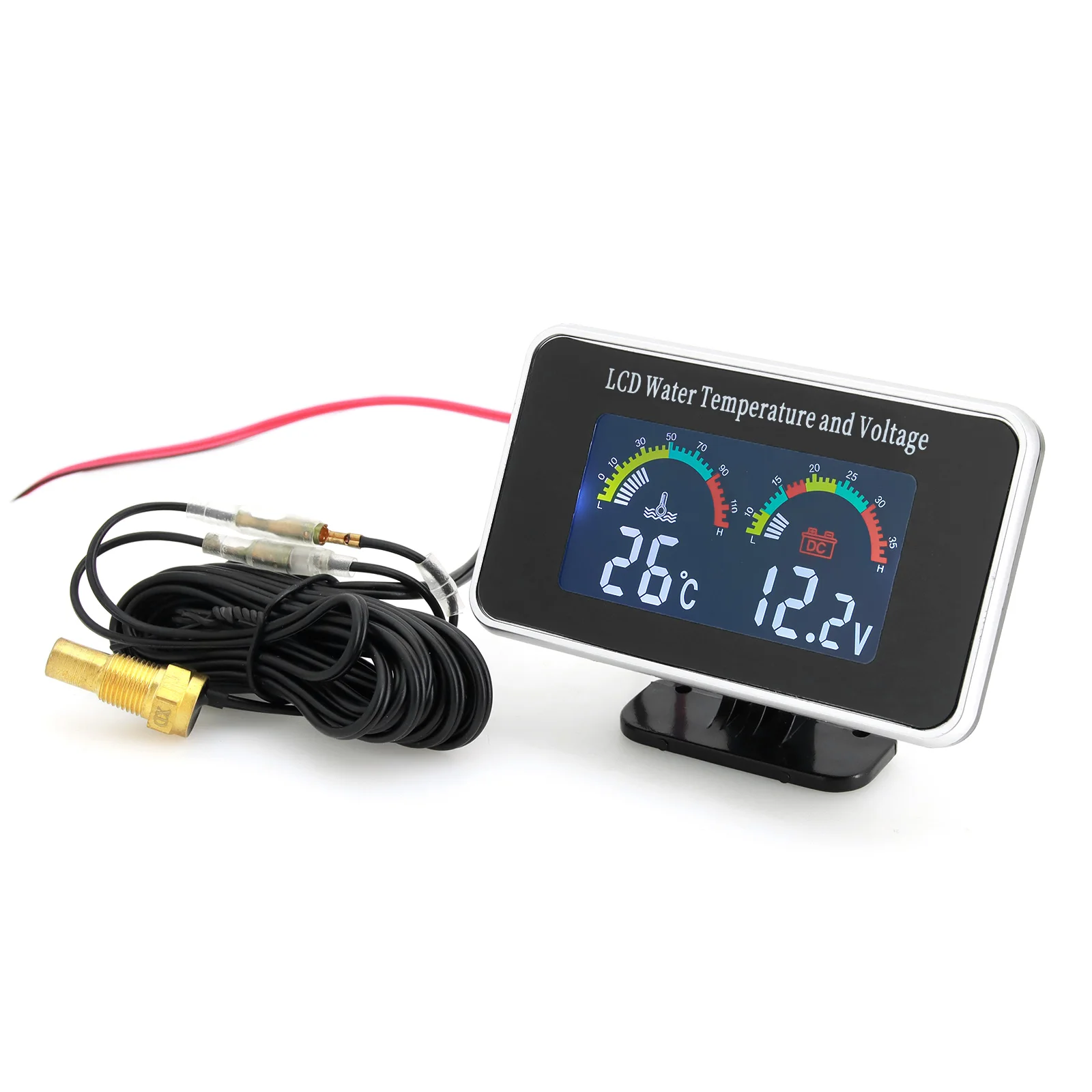 AD Waterproof LCD Digital Car Truck Voltmeter Water Temp Gauge Temperature Sensor 10mm Temperature Volt Meter 12v Voltage