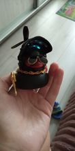 Looks great and easy to assemble. Its a little bigger than an average rubber duck. The hood cannot go down all the way if the glasses are on, but its still great and i will be ordering a second one