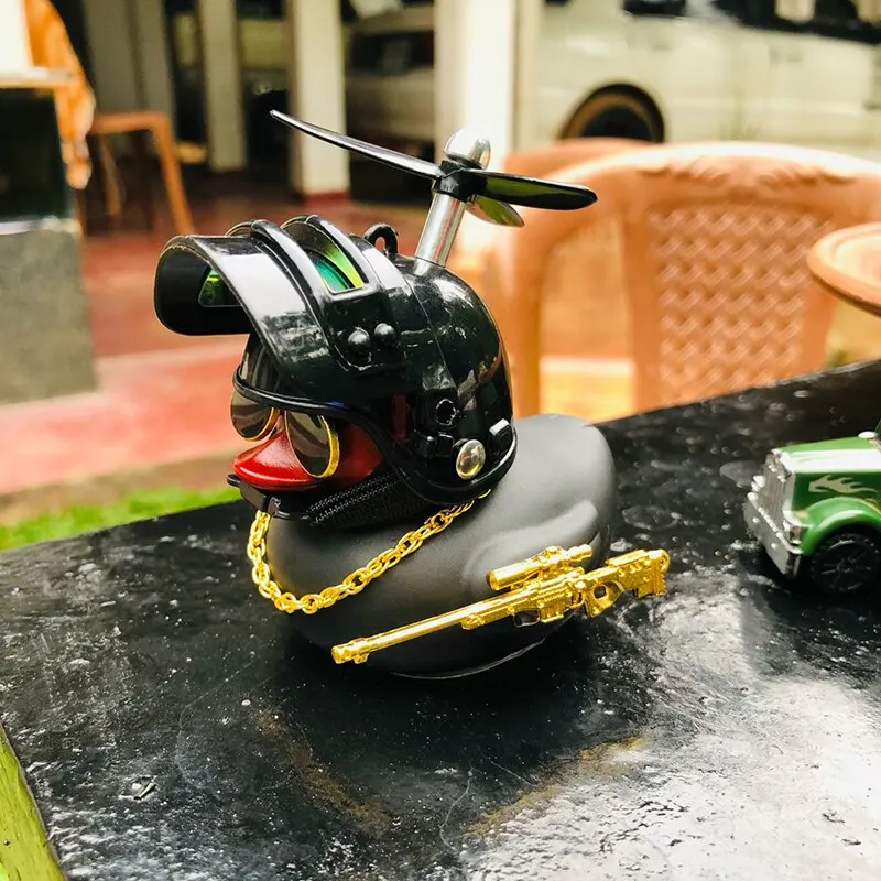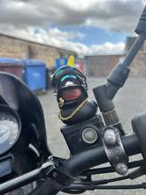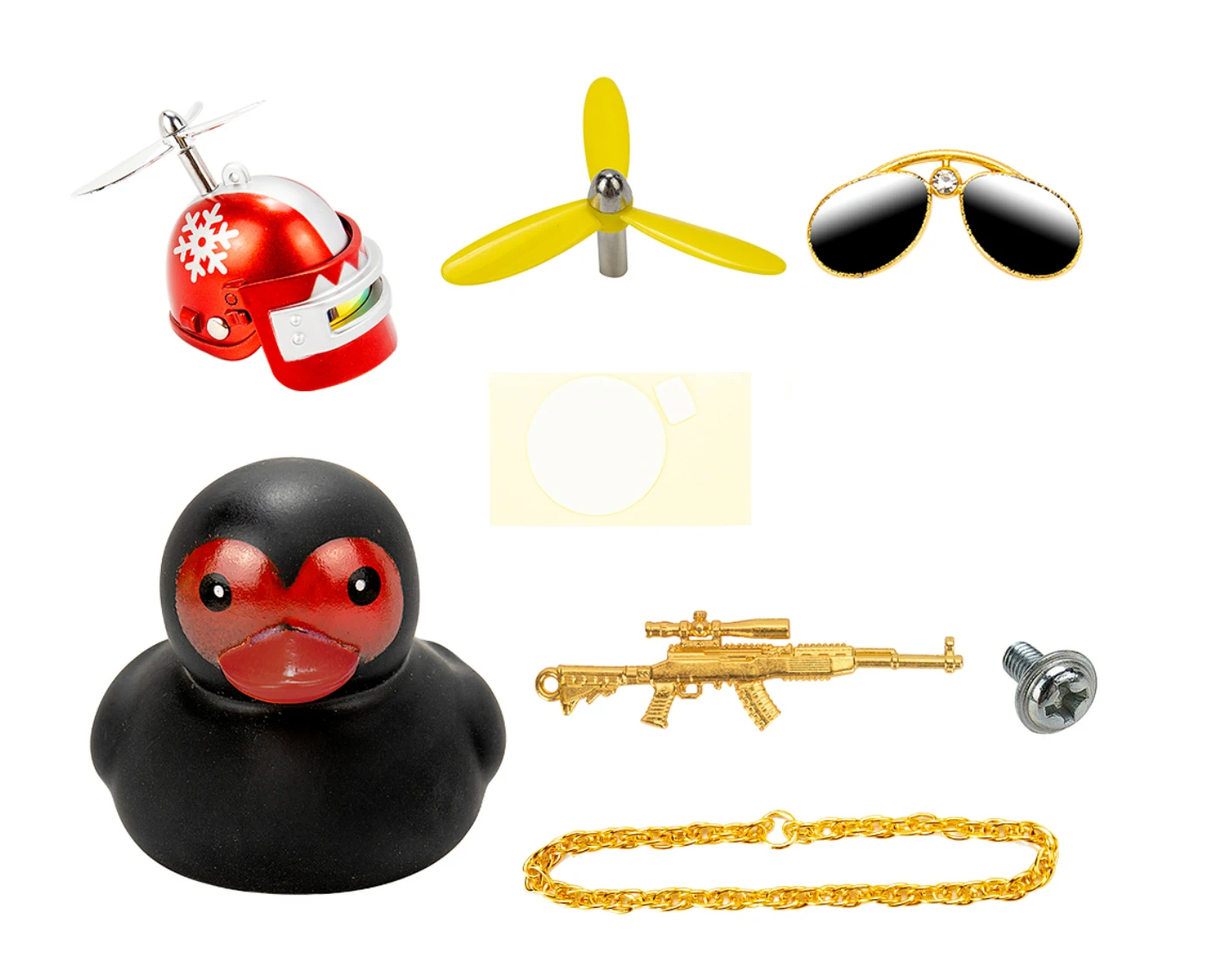 Really cute duck , i got it for my partners motorbike and its very cute it even squeaks and the spinner on top spins very fast at speeds