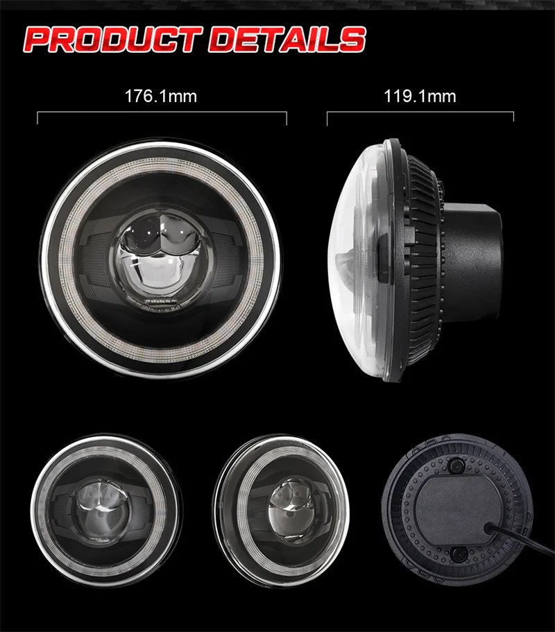 Car 7″ Headlight for Land Rover Defender 90 110 Round LED Headlights DRL With Yellow Signal Light for Lada Niva 4X4 Jeep JK LJ