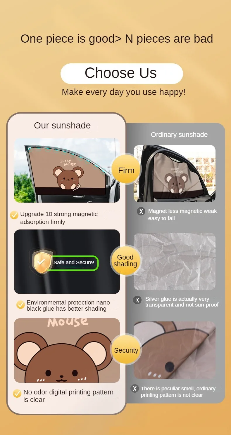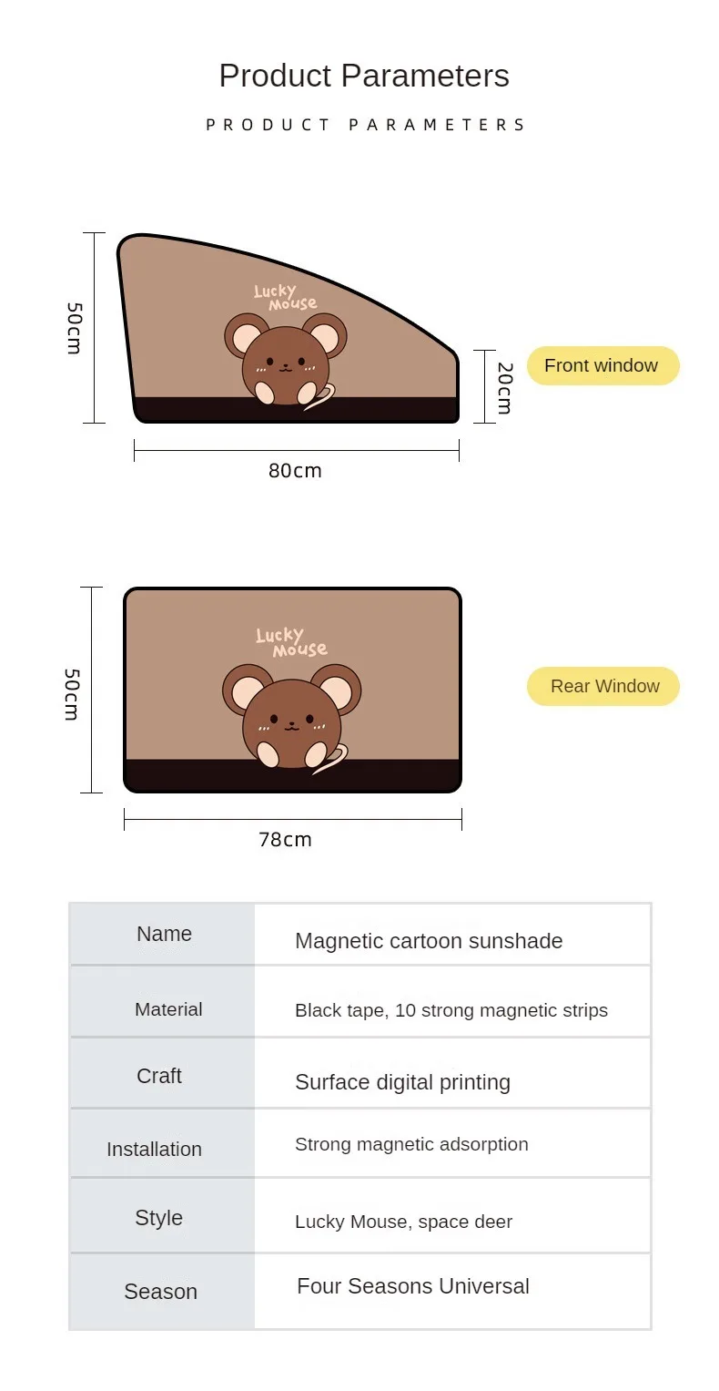 Car Cartoon Cute Animal Magnet Parasol Side Window Sunshades Windshield Sunshade Auto Window Sunshade Cover for Children Baby