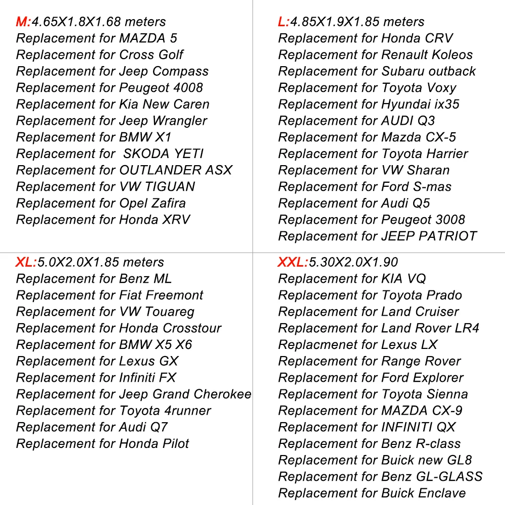 There are 4 different sizes car cover you can choose from so as to meet different needs.