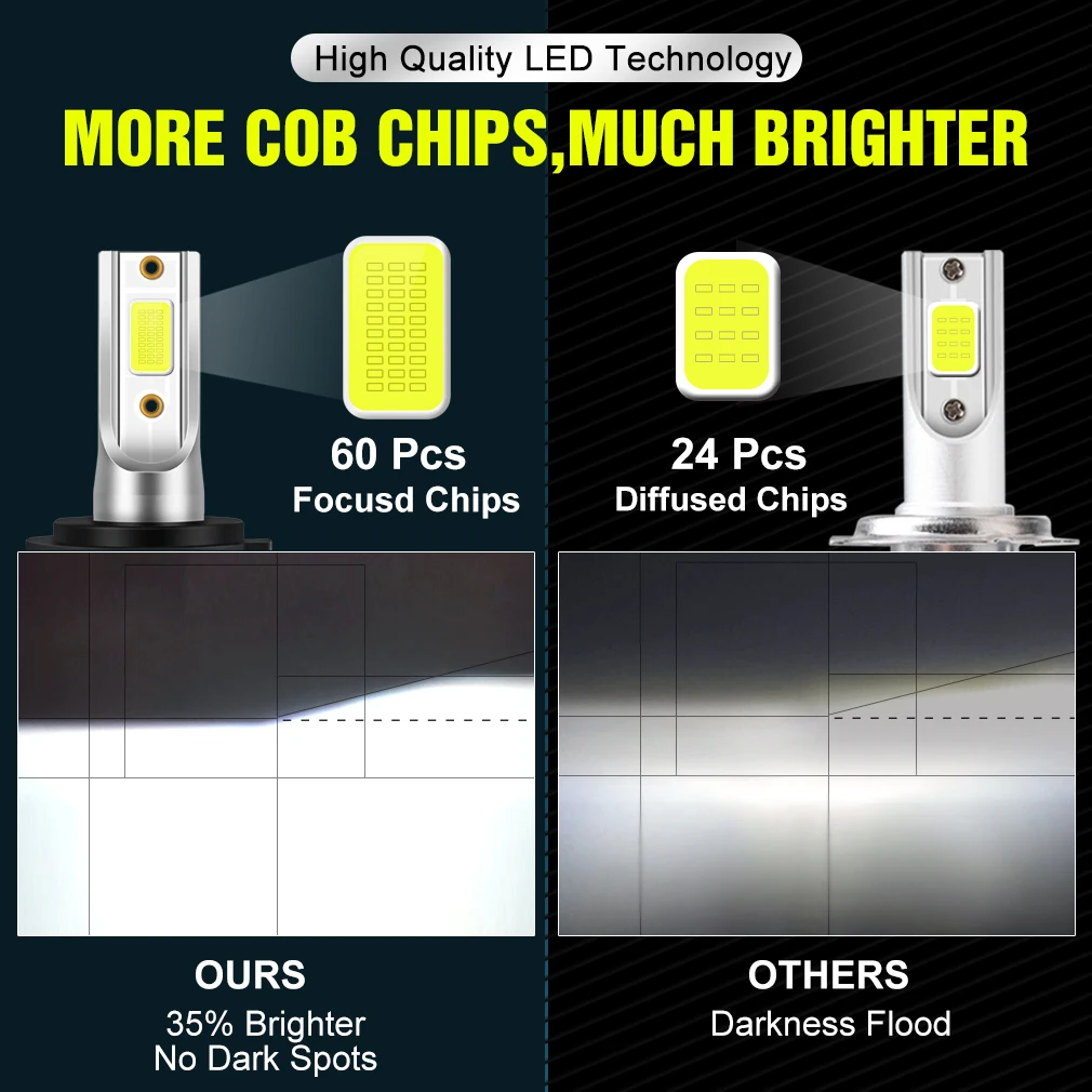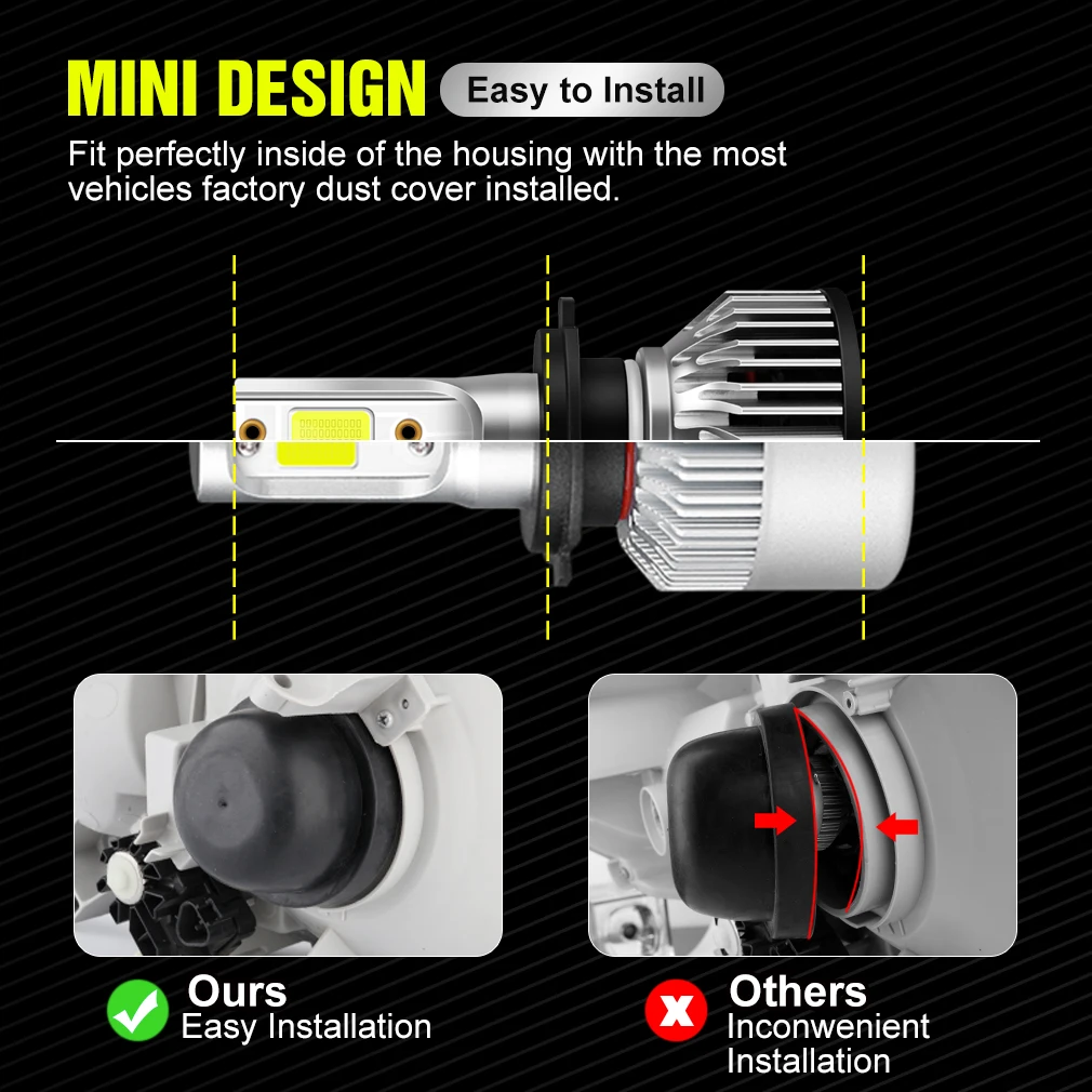 Mini Car Headlight 12V H1 H4 H7 LED Bulb H8 H11 9005 HB3 9006 HB4 9004 HB1 9007 HB5 H13 Led Lights 15000LM Turbo