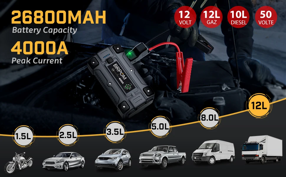 Car Jump Starter 4000A 26800mAh Car Battery Powerbank Auto Battery Booster Charger External Battery