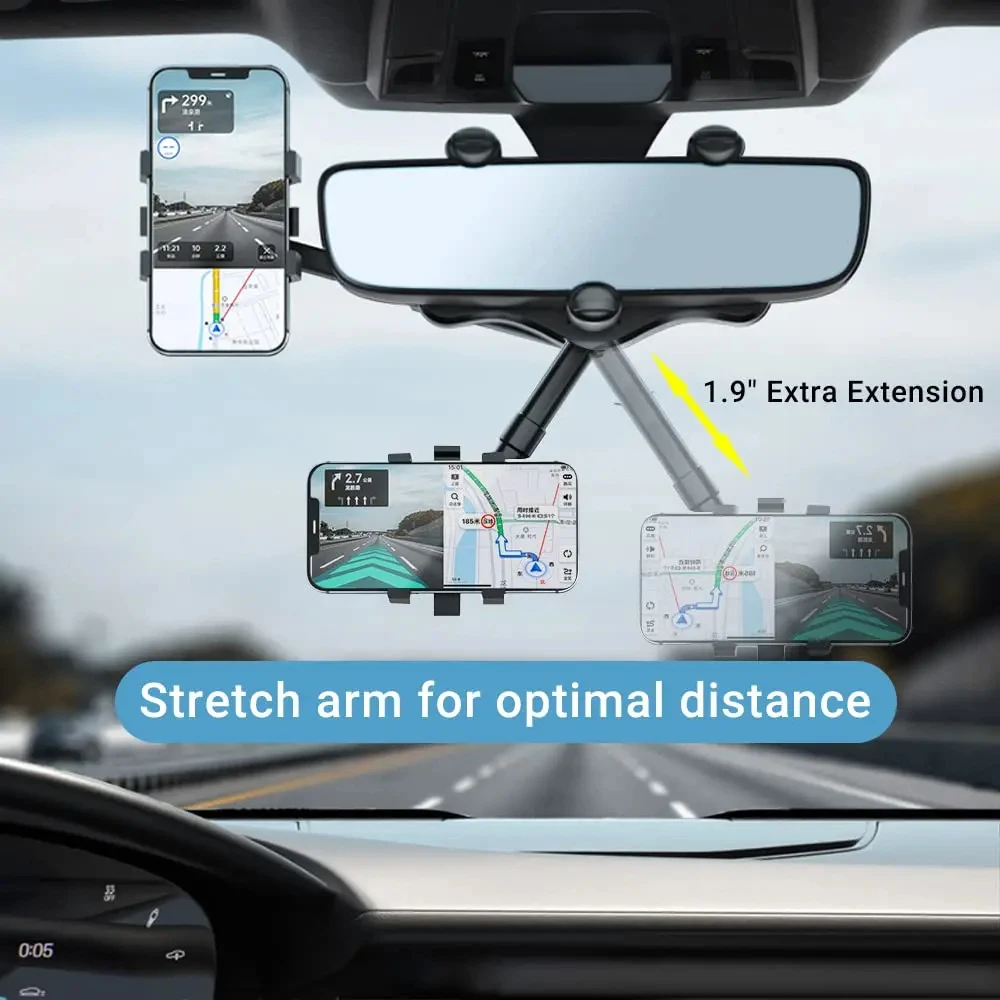 1. 360° Rotation for Perfect Viewing: Enjoy the flexibility of our car phone holder’s 360° rotating design, allowing you to effortlessly position your phone at any desired angle. With adjustable arm length (0-2 inches), it offers a customizable fit without obstructing your view. (Please ensure compatibility with your rearview mirror)