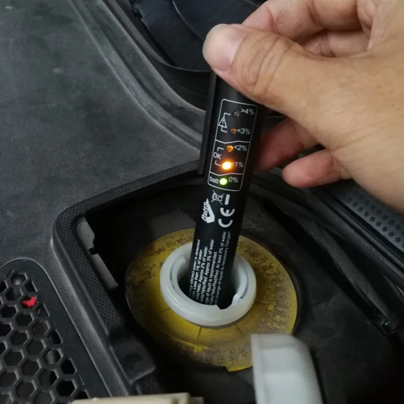 After turning on the power, fully extend the test probe of the test pen into the brake oil cup, and the test pen will immediately display the test results through the LED light and keep the test results. At this time, you can take out the test pen to watch the test results.