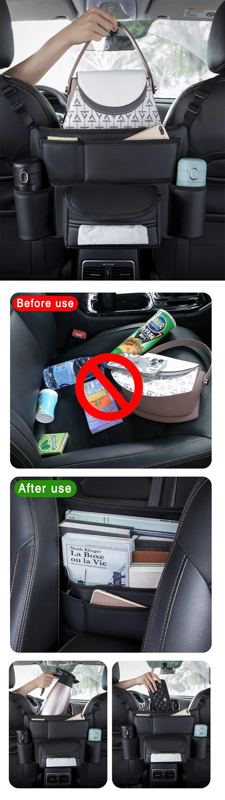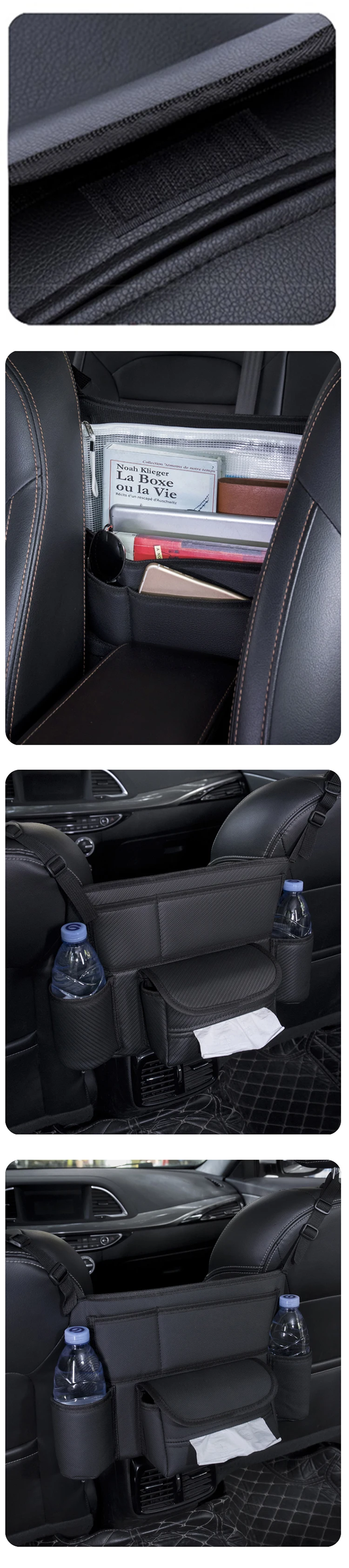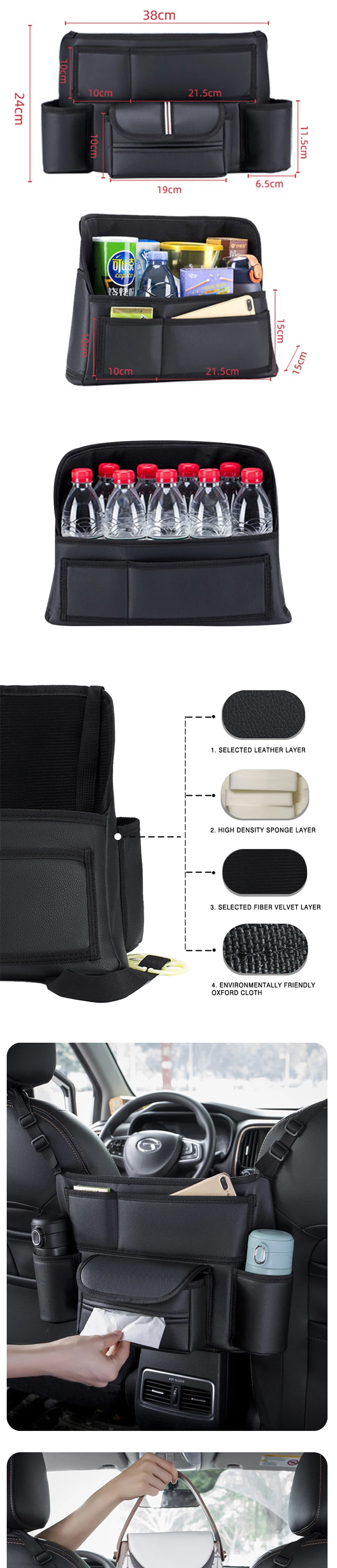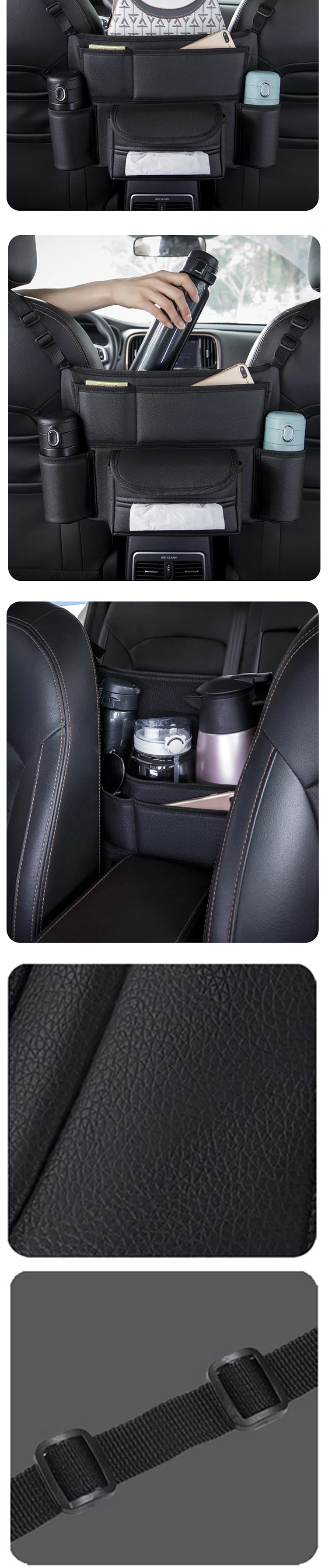 Car Seat Middle Hanger Storage Bag Leather Car Organizer Holder For Handbag Holder Tissue Water Cup Pockets Stowing Tidying
