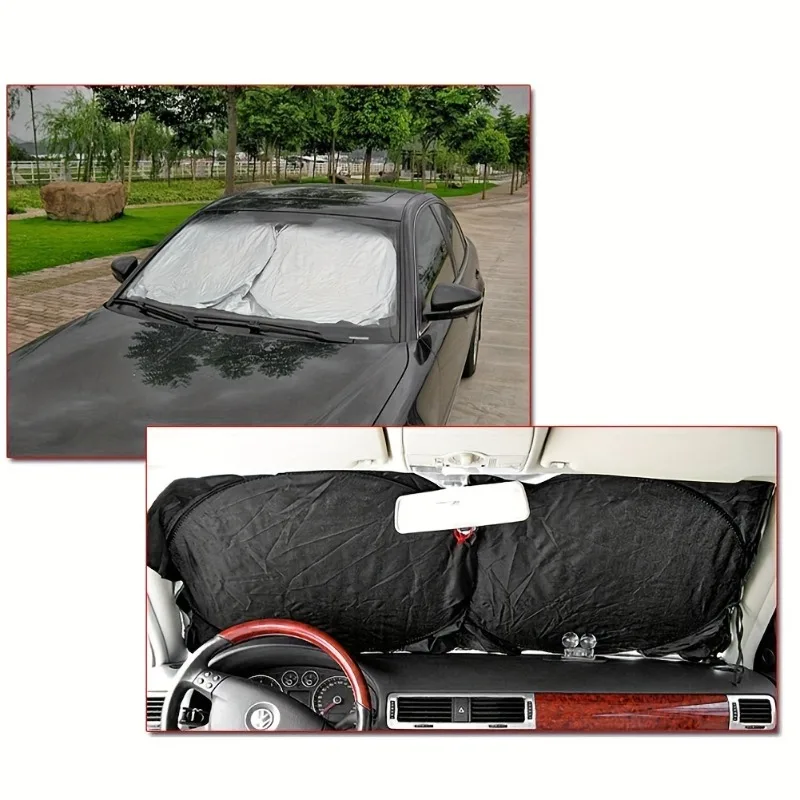 Car Sun Shade – Foldable Sun Car ShieldCoated Silver Cloth ReflectivePolyester Material Blocks 99% UV Rays, Fits Most Cars