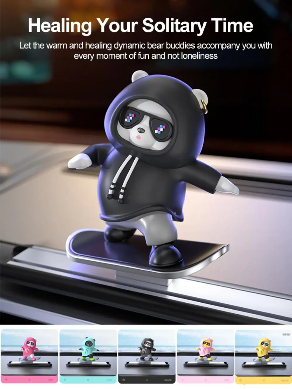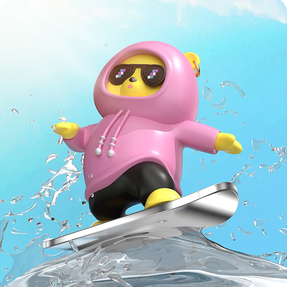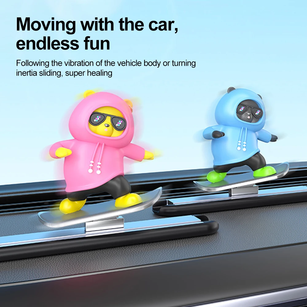 1. Sliding with vehicle driving. Balls are built into the slide rails, making the movement smooth and silent. During driving, the skateboard bear will slide left or right based on inertia.