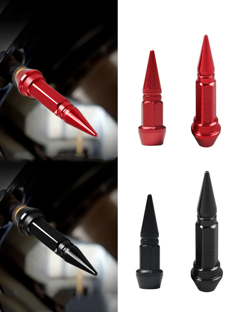1/4Pcs Car Tire Valve Caps Car Motorcycle Bullet Wheel Tire Valve Caps Spike Shaped Aluminum Car Styling Auto Exterior Accessories