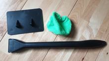 Snaps together easily. Cleaning cloth fits well but takes a good pull to put it on.