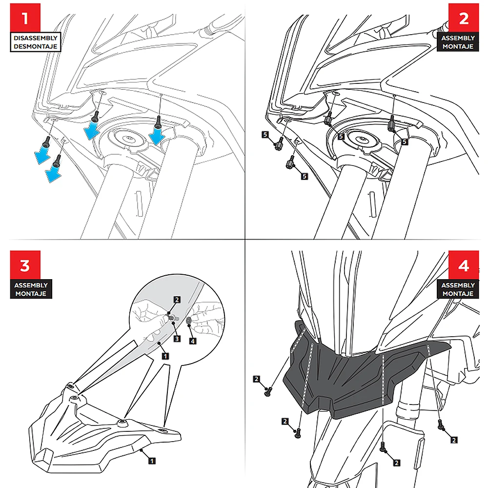 Designed specifically for your motorcycle offering added protection at the front and unique styling to really set your motorcycle apart from the rest. Available in Matte Black Look your Beak will arrive carefully packaged together with a full fitting kit and any bracketry which may be required. No modification to your motorcycle is necessary.