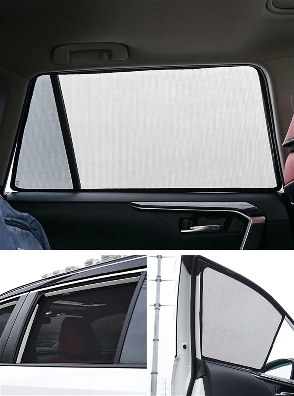 Car shade fits well. It makes the stock tint look darker. This adds more privacy from the outside of the car.