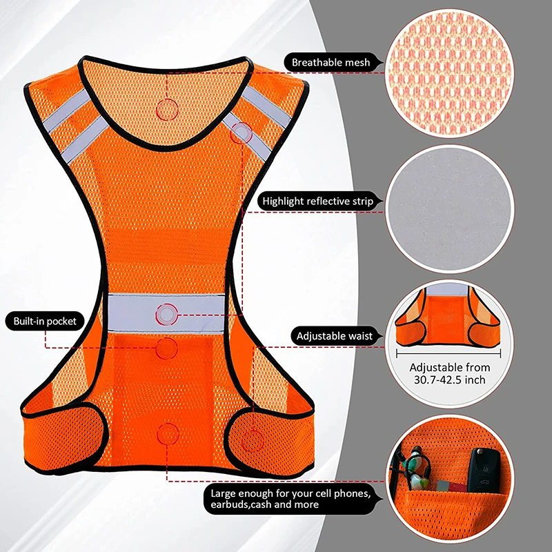 Material:100% chemical fiber mesh fabric high grade Class II reflective strip