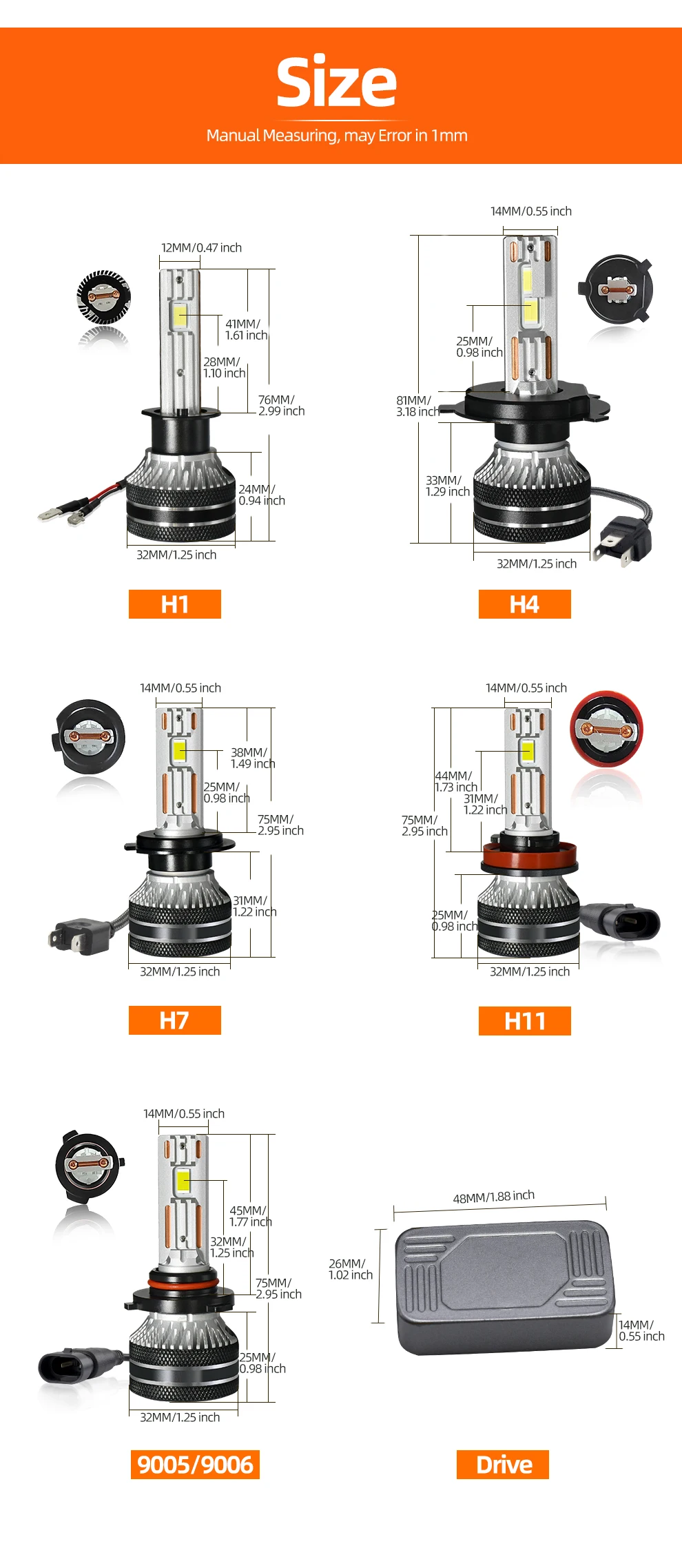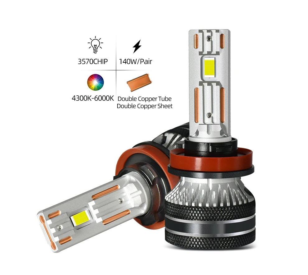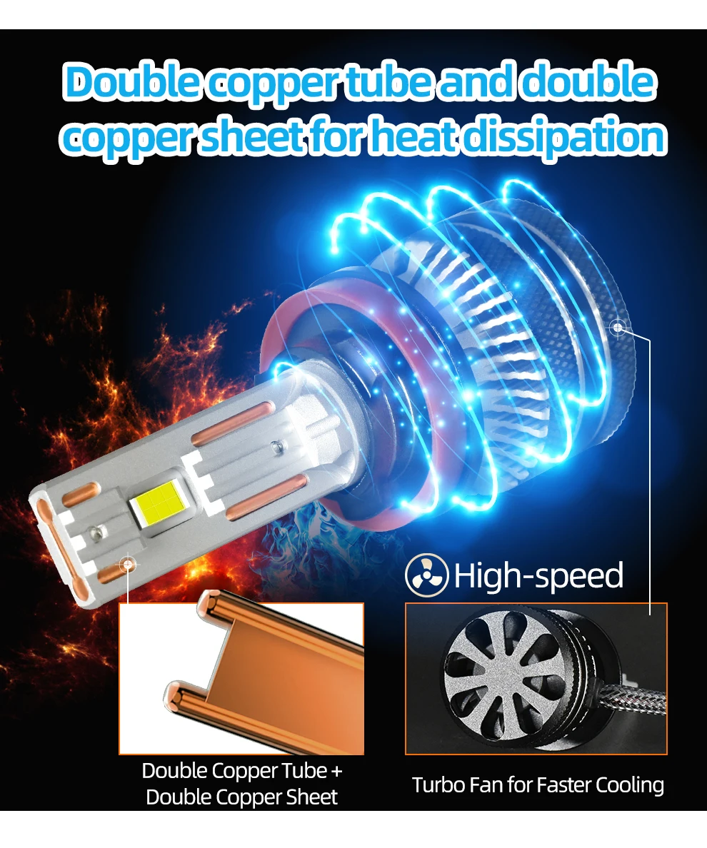 Double Copper Tubes LED Car Headlight Bulb H1 H4 H7 H11 H8 9005 9006