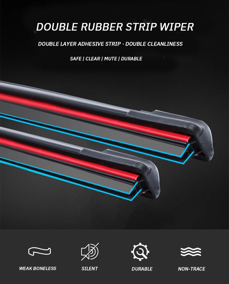 Double Rubber Strip Wiper Fit Durable Mute Non Mark Boneless Multifunctional Double Rubber Strip Car Wiper Universal 1pc