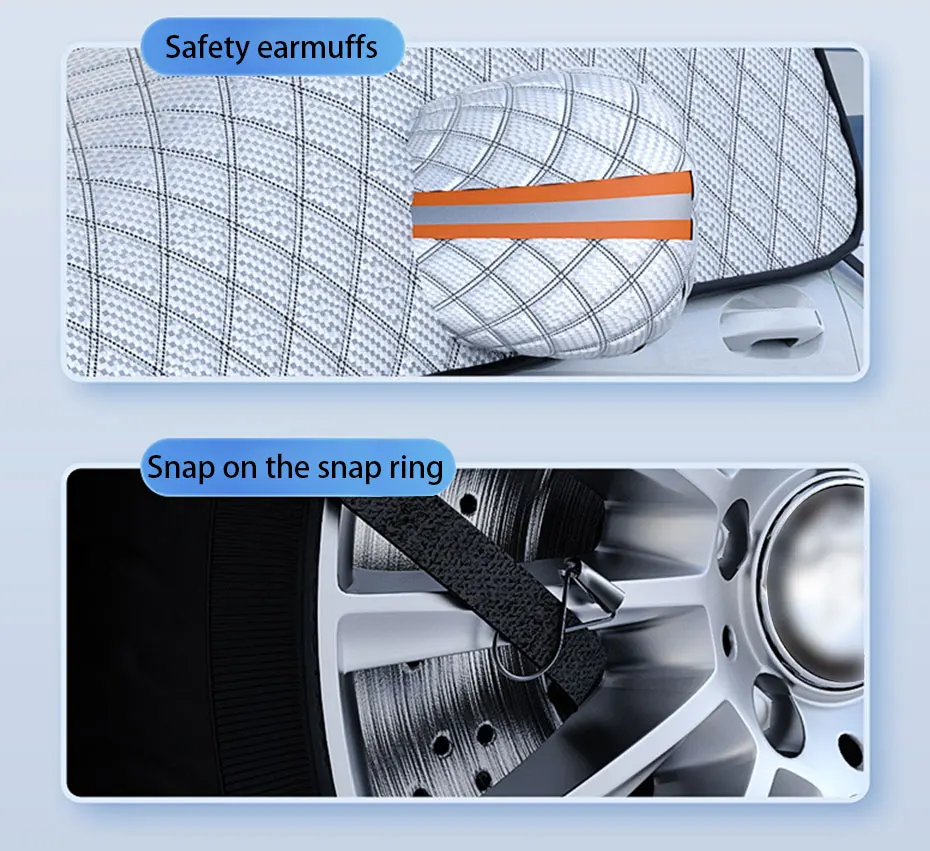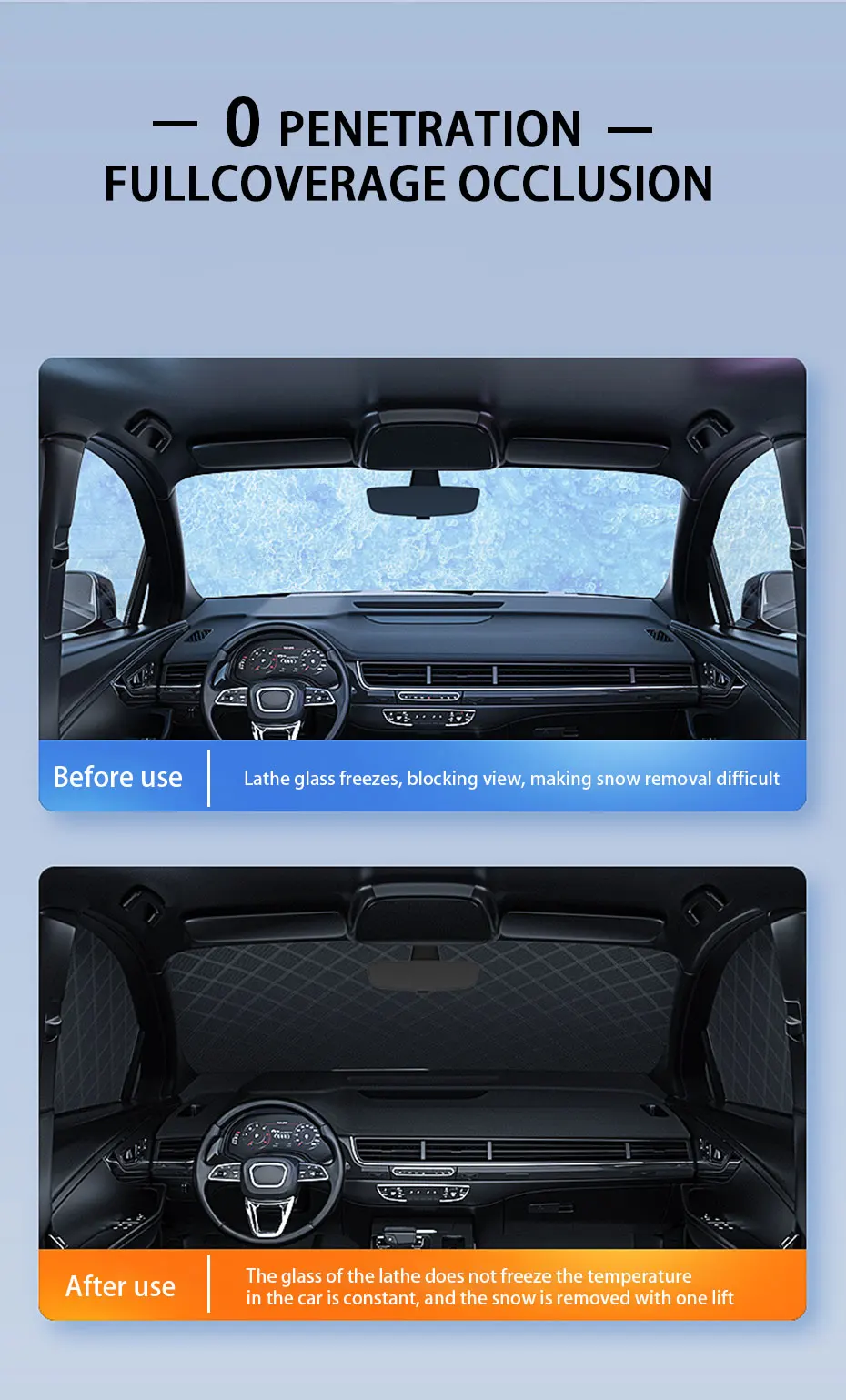 • Sunshade Protector Cover: This snow cover not only protects your car’s windshield from snow and ice, but also acts as a sunshade protector, reducing the heat and glare from the sun.