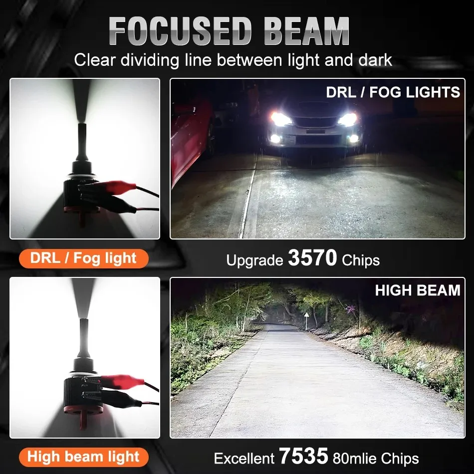 – Super Brightness: Our car headlights utilize cutting-edge LED technology to provide outstanding brightness, ensuring you have excellent visibility during nighttime driving. Whether on city streets or rural roads, they deliver exceptional illumination, enhancing driving safety.