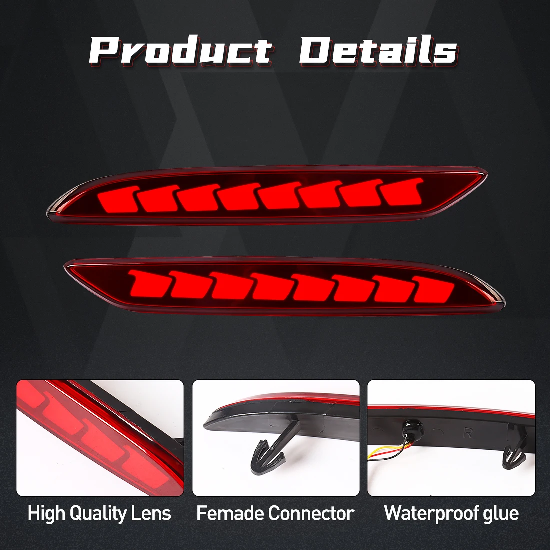 2. 3-in-1 Functions. Running Lights + Brake Lights + Turn Signal Lights