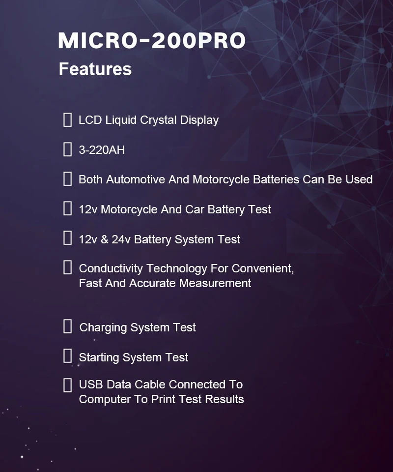 Micro 200 Pro Car Battery Tester Small Clip 12V For Garage Workshop Auto Mechanical Cars Inspection Tools Battery Testers