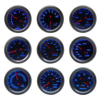 52mm Boost/Vacuum/Water Temp/Oil Temp/Oil Press/Voltage/Tachometer/Air Fuel Ratio/EGT Gauge Analog Blue Led+ 52MM Gauge Pods