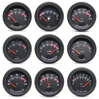 52MM Gauge 12V Water Temp Oil Temp Gauge Oil Press Fuel Volts Gauge Air Fuel Ratio Boost Exhaust Temp Meter Black Face Gauge