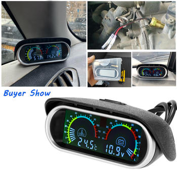 2 in 1 LCD Car Water Temp Gauge + Water Temperature Sensor 10mm Meter Voltmeter Voltage Digital Horizontal 12v 24v Accessories
