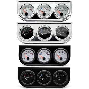 52mm Volt Gauge Water Temp (Celsius) Oil Pressure Black/Chrome Bezel Black/White Face With Temp&Pressure Sensor 3-In-1 Kit Meter