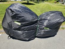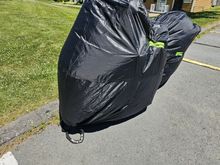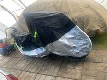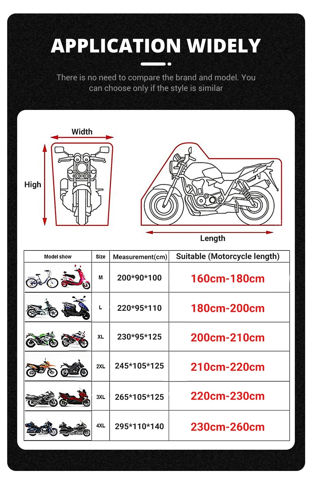 Bought for my CBR500R which is 82 inches long. The XL is actually a few inches longer, but I have no complaints. Dont let the picture dissuade you. It was a windy day when I took the photo and the wind was blowing inside. I am very happy with this cover. The only thing I find fault in is I bought an all Black cover, but received one with reflective strips. Not an issue for me.
