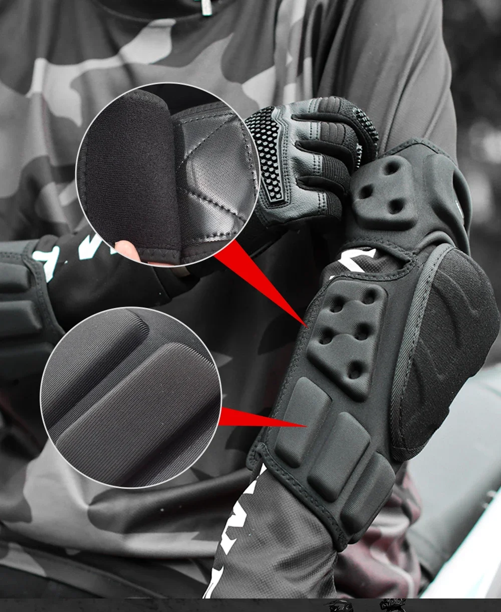 Elbow Pads is consist of the high-impact wear-resistant Aramid Fiber material & high density EVA foams.