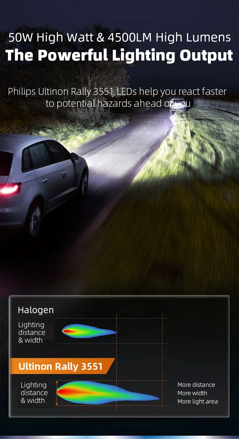 Probably the best LED bulb ever. You shodn't finding other LED bulb (or xenon!), this product is probably the best chose. I tested many LED bulb (h7 and h4), other has smaller real Wattage, (15-25 w/bulb -> CAN bus problem) and in best case good hotspot/gemetry, this Philips has geometry and hotspot like original halogen bulb. This is probably the result of precise workmanship reproducing the shapes and features of the original bulb *no CAN problem *perfect geometry/hotspot like halogen bulb *no blind effect!