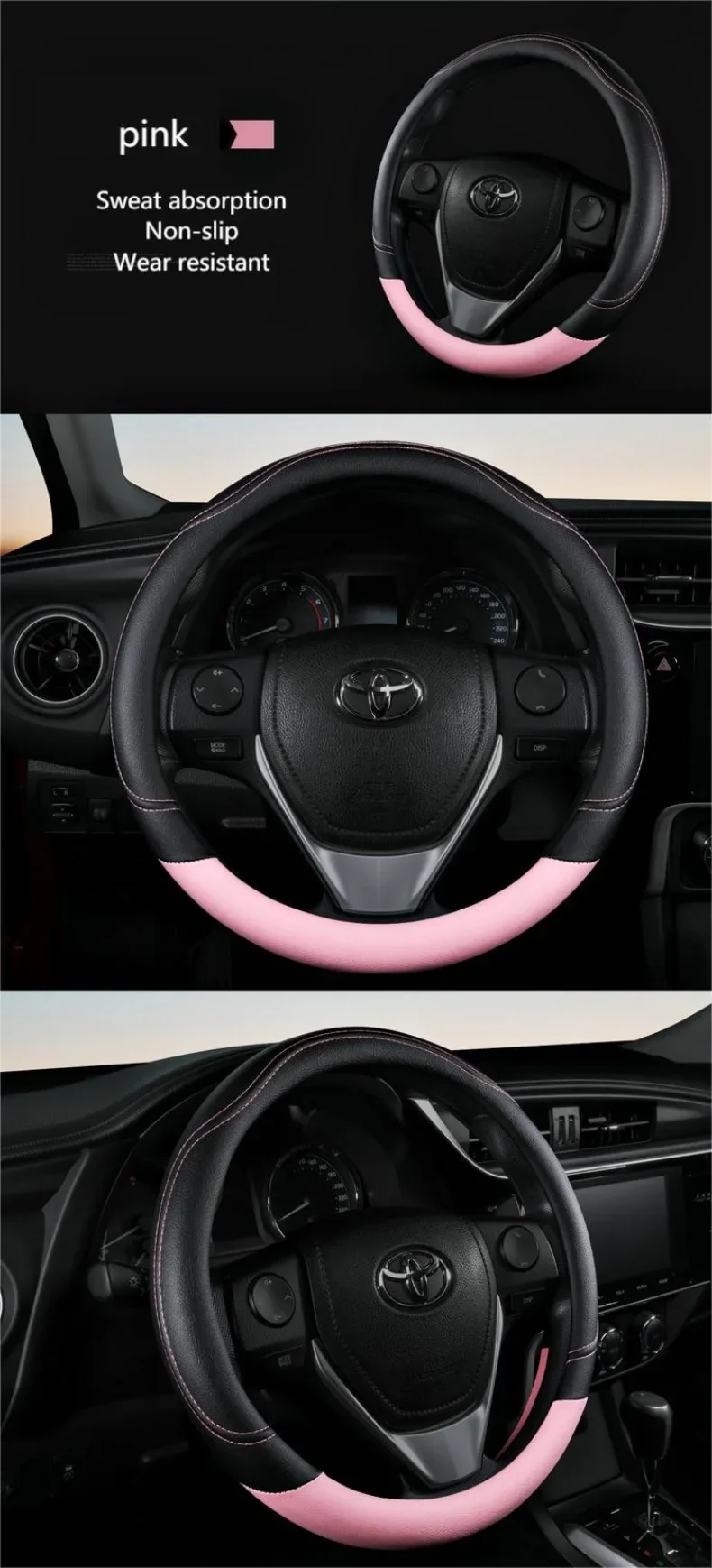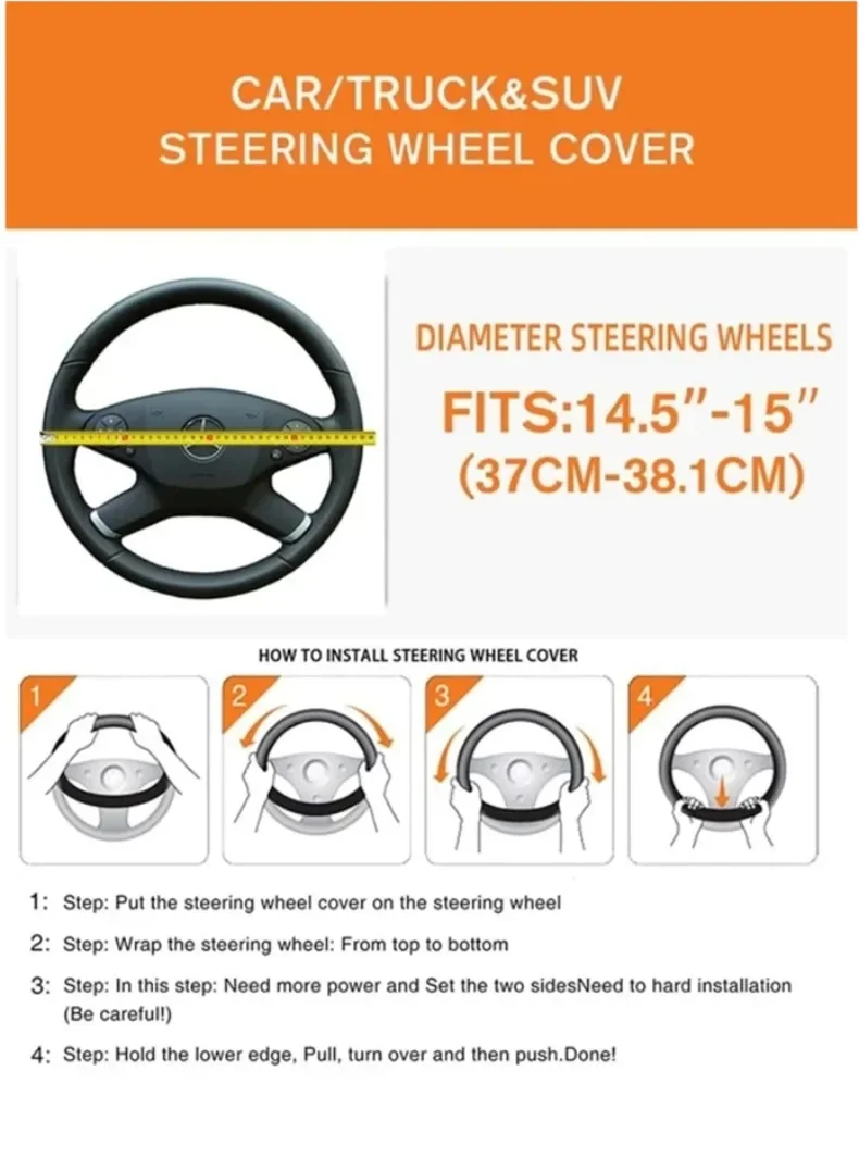 A very nice looking steering wheel cover! It's a little bit too small for my car, but I'll give it to someone who can use it.