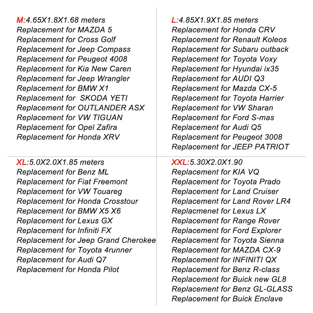 There are 5 different sizes car cover you can choose from so as to meet different needs.
