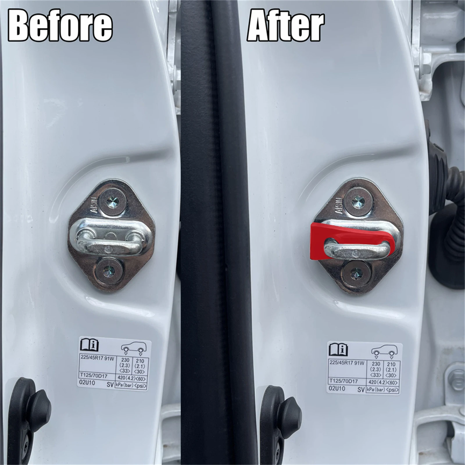 * If your carhad a rattling sound thatcouldn’t pin downwith this car. took a chance and installed these on each door striker. Since installation the rattling sound isgone and hasn’t come back. They install easy enough, you just work them onto the striker.