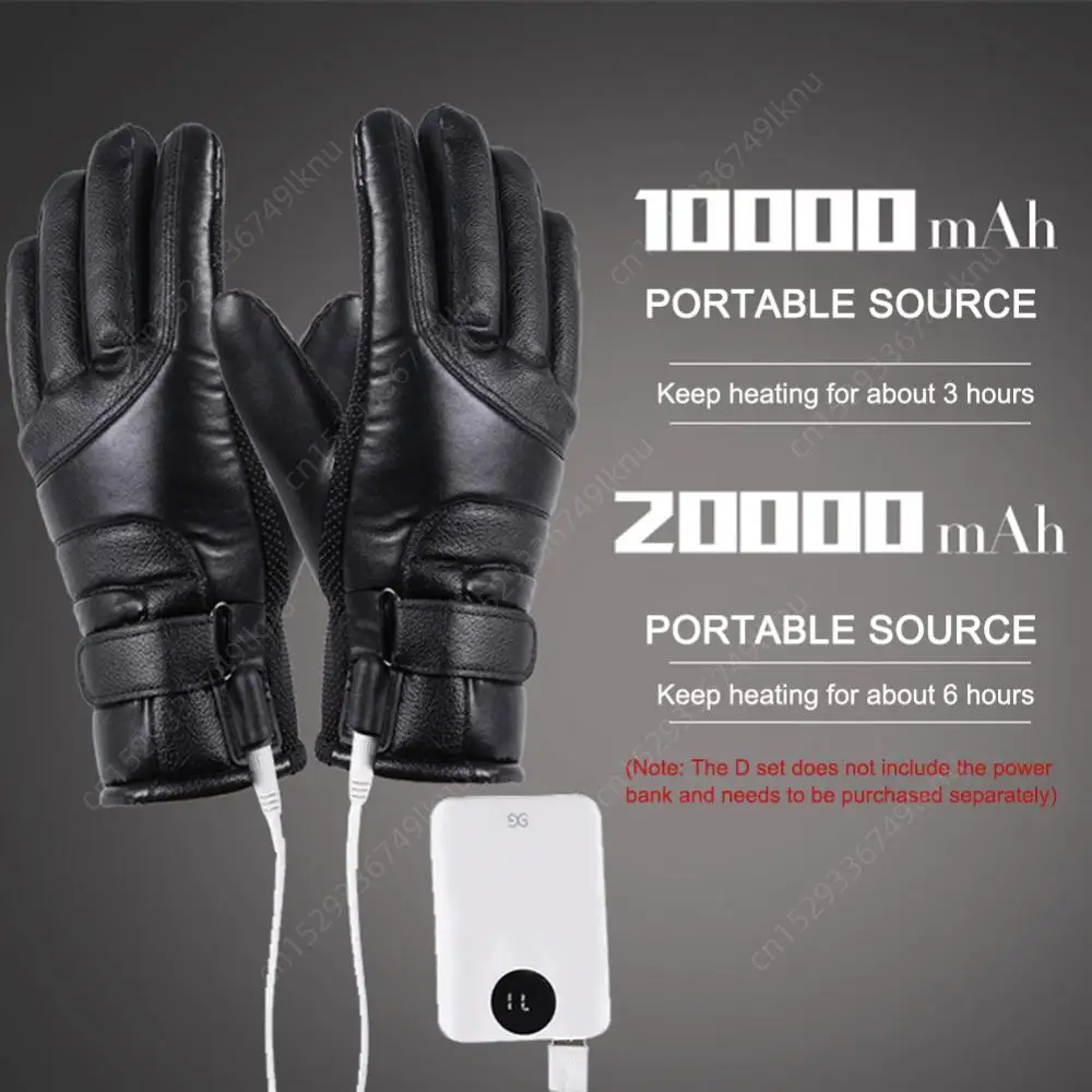 USB Winter Electric Warming Gloves Waterproof Leather Heating Gloves Soft Winter Outdoor Warm Gloves for Fishing Riding Cycling