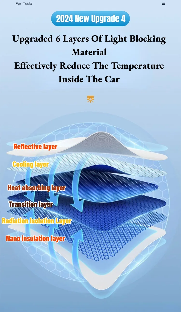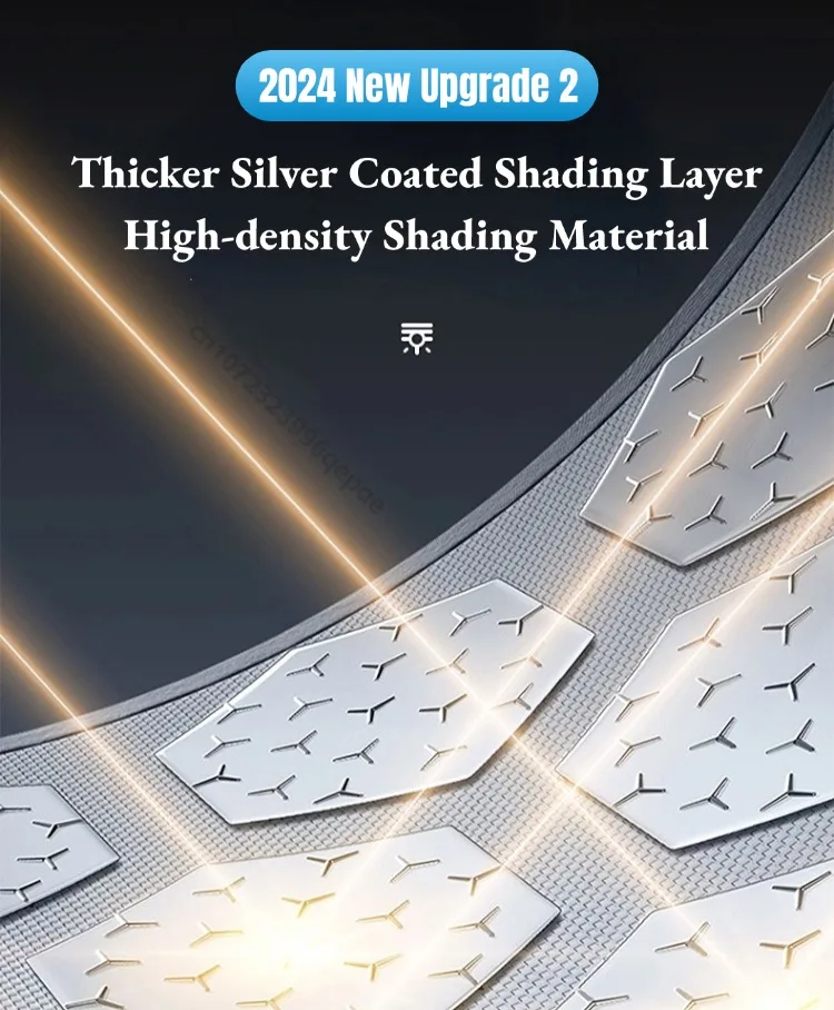 Unlike the double-layer sunshades on the market, we have made it 2 in 1. The front nano-coated silver layer reflects UV rays and the back high-density material blocks light.