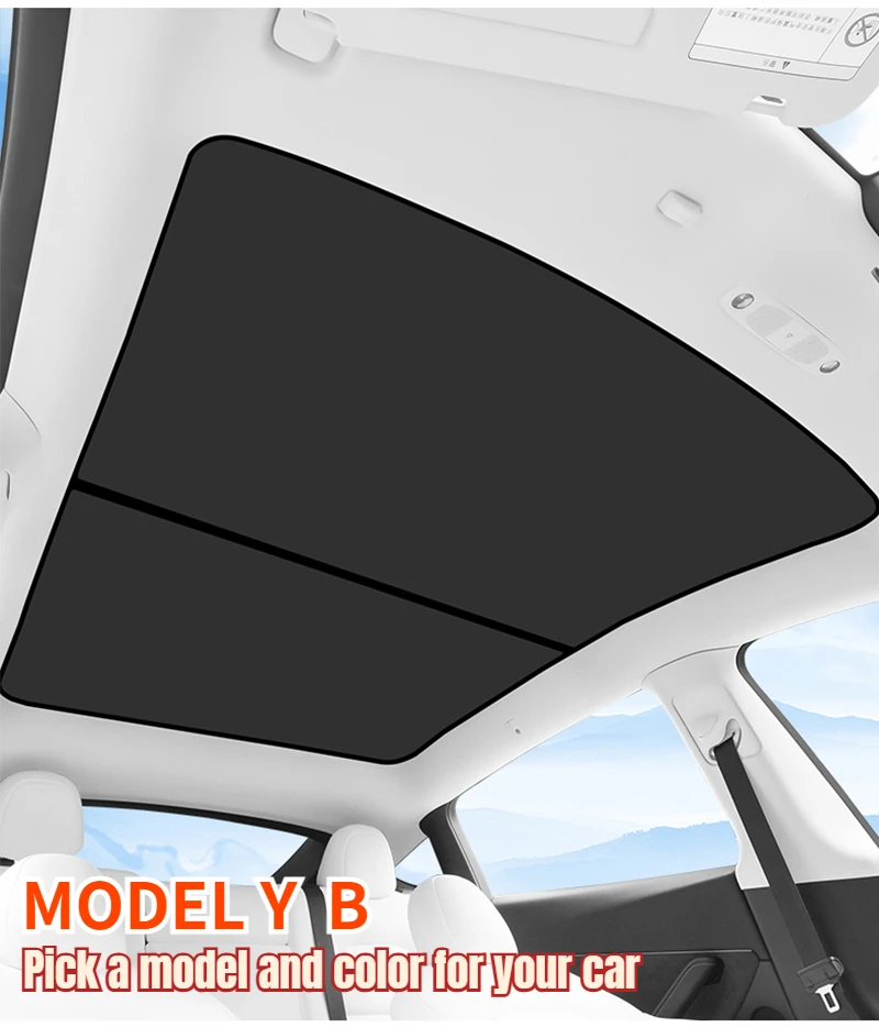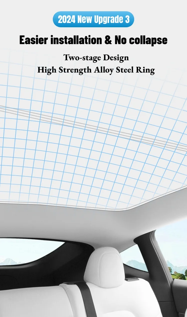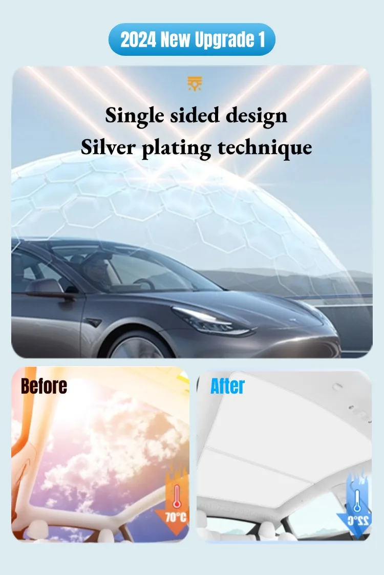 2023 new upgrade Glass Roof Sunshade reduces car interior temperature by reducing heat transmission into the cabin by blocking two-thirds of solar thermal load .
