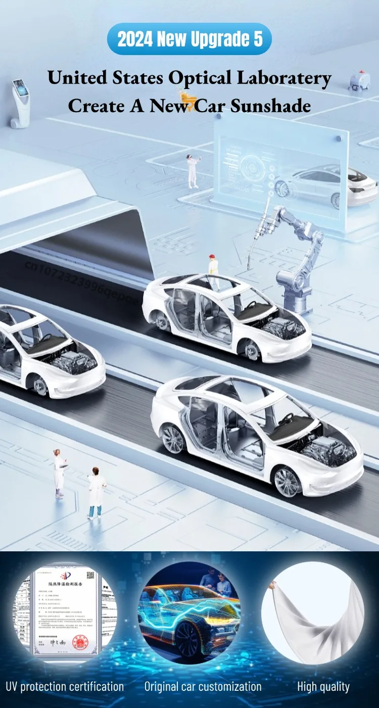 Sun Shades For Tesla Model 3+ Highland 2024 Y 2021-2023 Ice Cloth Buckle Sun Pare Glass Front Rear Sunroof Skylight Accessory