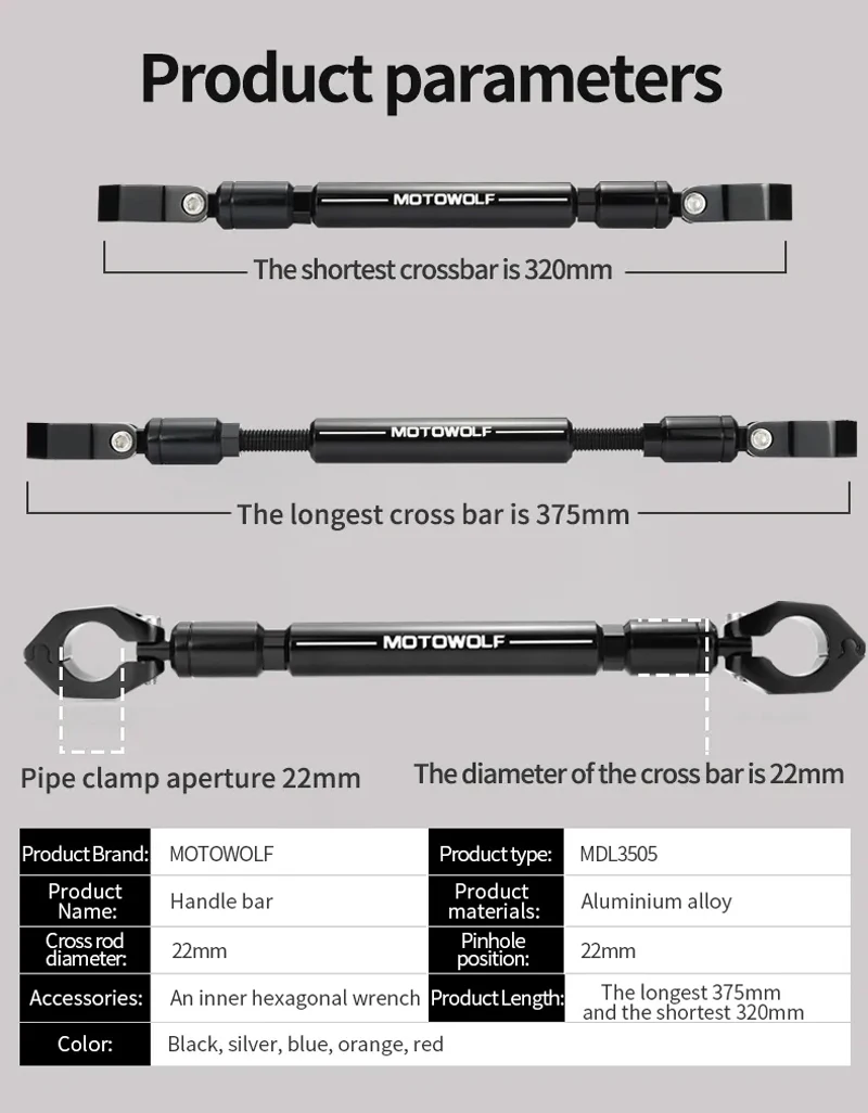 1. 100% New Brand Motorcycle 7/8″ 22mm Handlebar Cross Bar